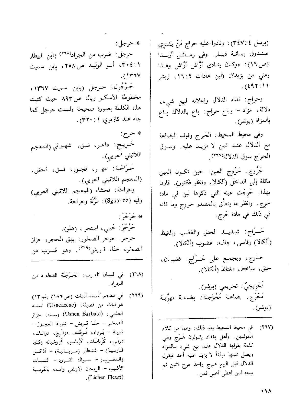 (برسل 4: 347): ونادوا عليه حراج مَنْ يشتري صندوق بمائة دينار وفي رسائل أرندا (ص16): ((دوكان ينادي أرَّاش وهذا يعني من يزيد؟)) (لين عادات 2: 16، زيشر11: 492).