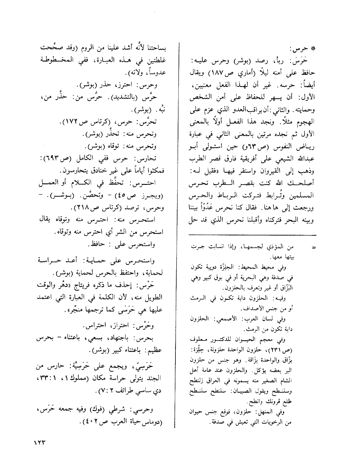 حَرْس: احذف كما ذكره فريتاج ((دهْر والوقت الطويل منه لأن الكلمة في العبارة التي اعتمد عليها هي حَرَسى كما ترجمها منجْر)).