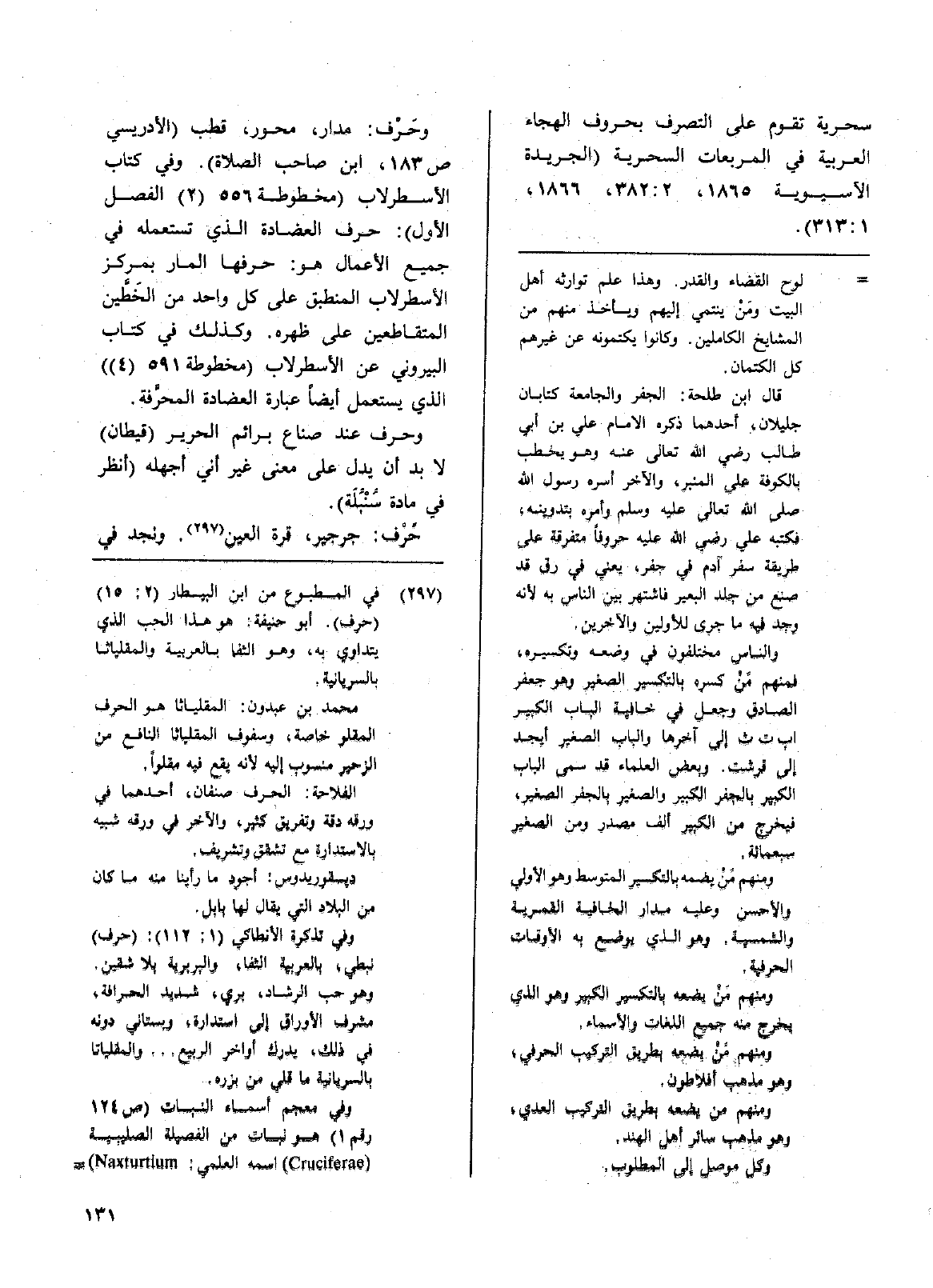 سحرية تقوم على التصرف بحروف الهجاء العربية في المربعات السحرية (الجريدة الآسيوية 1865، 2: 382، 1866، 1: 313).