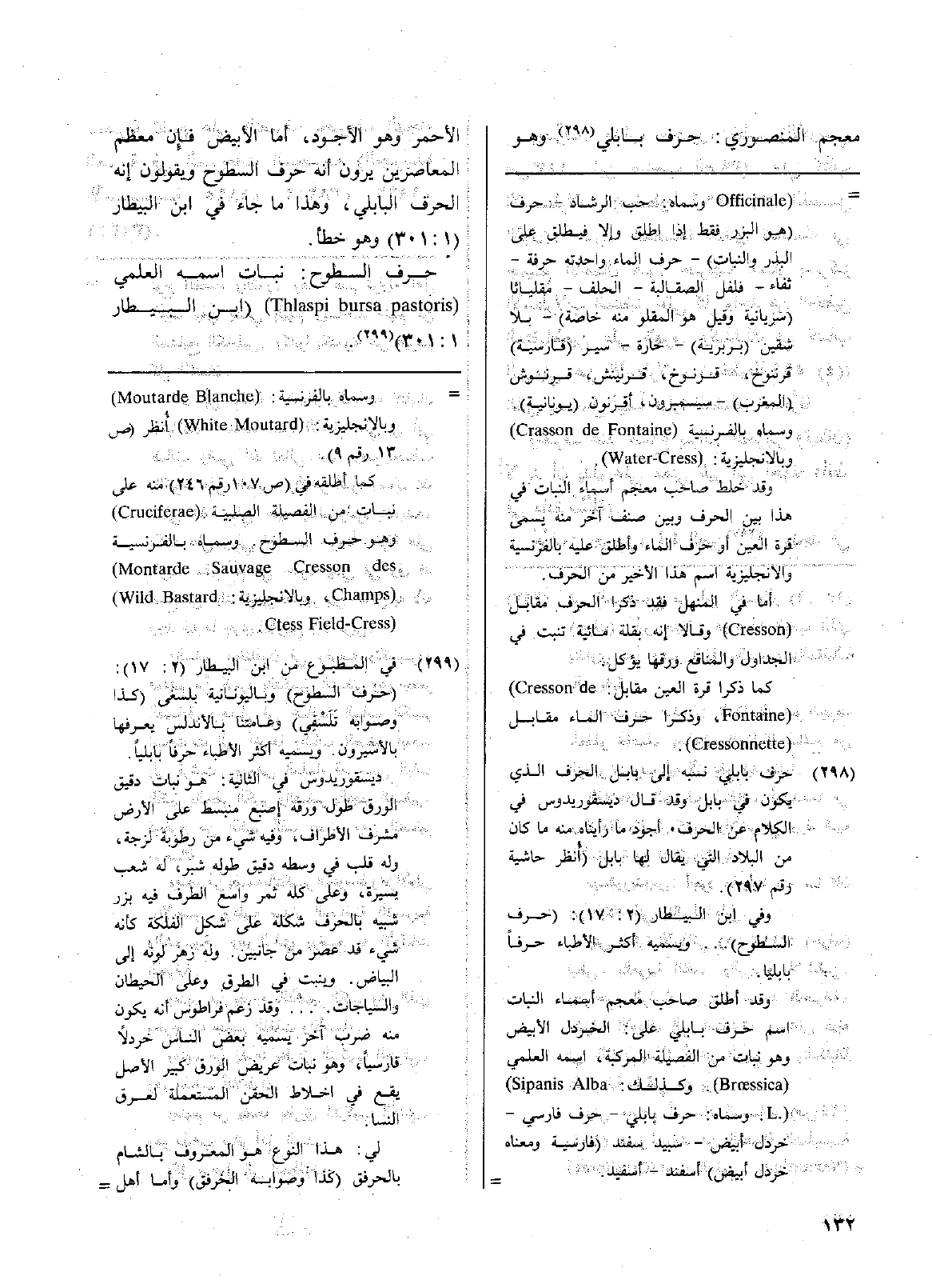 حرف السطوح: نبات اسمه العلمي: ( Thlaspi bursa pastoris) ( ابن البيطار 1: 301) حرف مشرقي: نبات اسمه العلمي ( Dirm draba) ( ابن البيطار 1: 301).