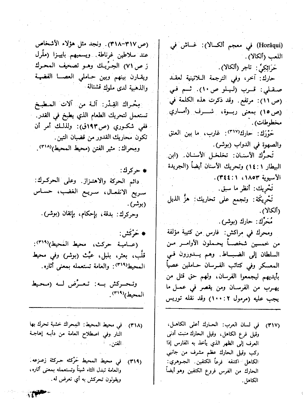 ومحرك في مراكش: فارس من كتيبة مؤلفة من خمسين شخصا يحملون الأوامر من السلطان إلى الضباط. وهم يدورون في المعسكر وفي كتائب الفرسان حاملين عصياً بأيديهم ليجمعوا الفرسان، ولهم حق قتل من يهرب من الفرسان ومن يقصر في عمل ما يجب عليه (مرمول 2: 100) وقد نقله توريس (ص317 - 318) ونجد مثل هؤلاء عند سلاطين غرناطة ويسميهم باييزا (ملّرل (ص71) الحِرّيِك وهو تصحيف المحرك ويقارن بينهم وبين حاملي العصا الفضية والذهبية لدى ملوك قشتالة.