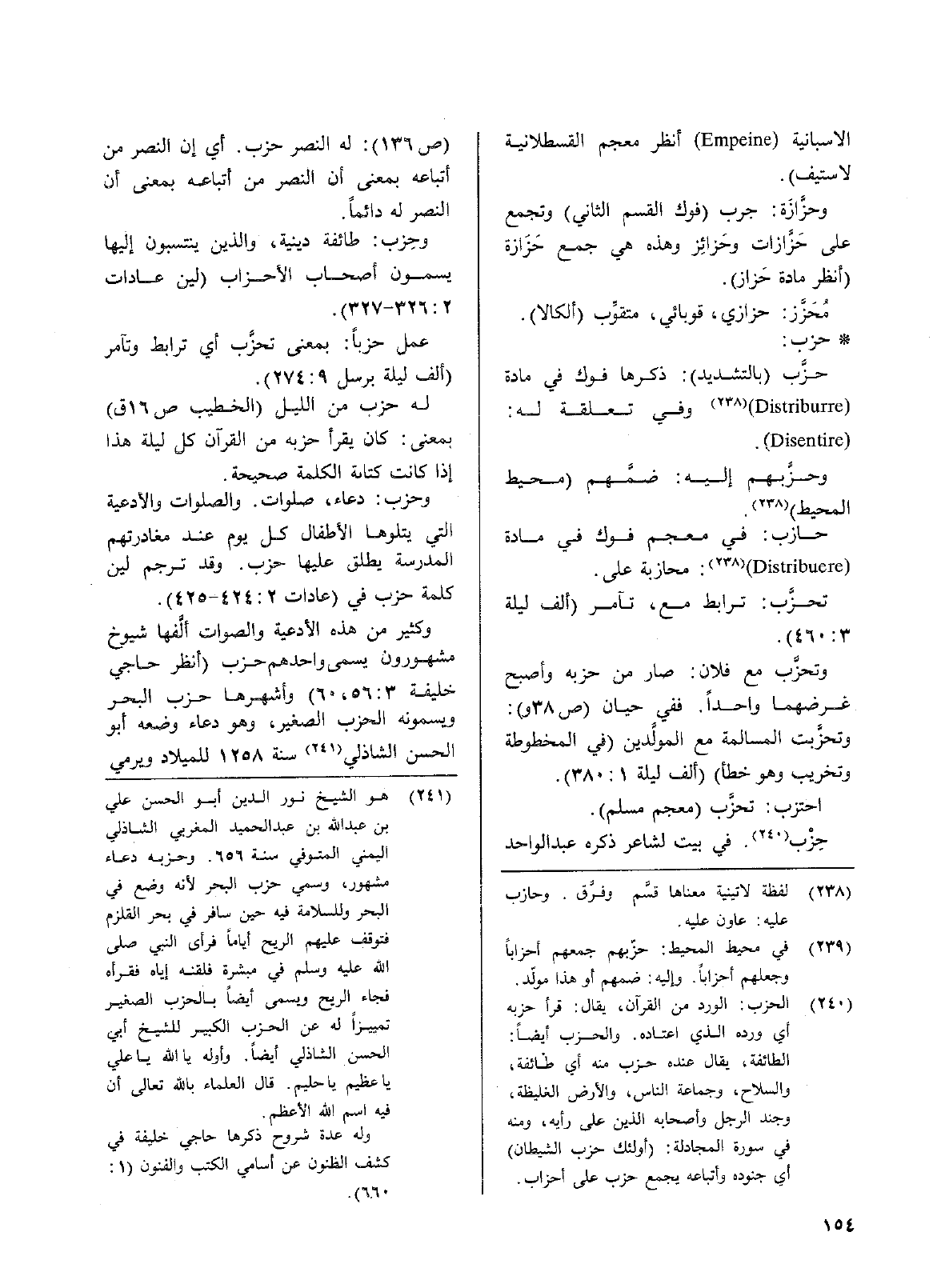 • حزب: حزَّب (بالتشديد): ذكرها فوك في مادة Distriburre)) وفي تعلقه له: ( Disentire) .