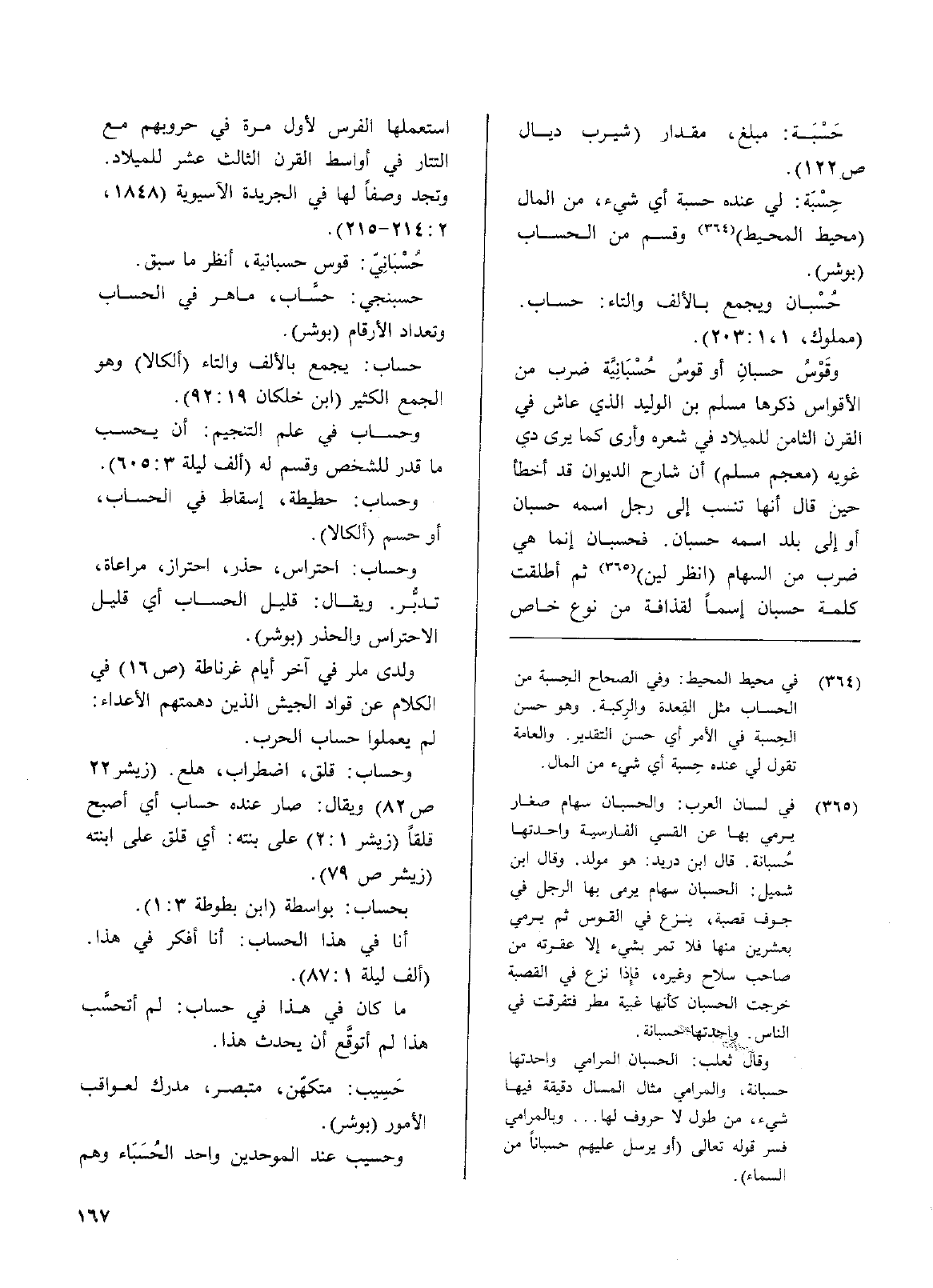 حساب: ويجمع بالألف والتاء (ألكالا) وهو الجمع الكثير (ابن خلكان 19: 92).