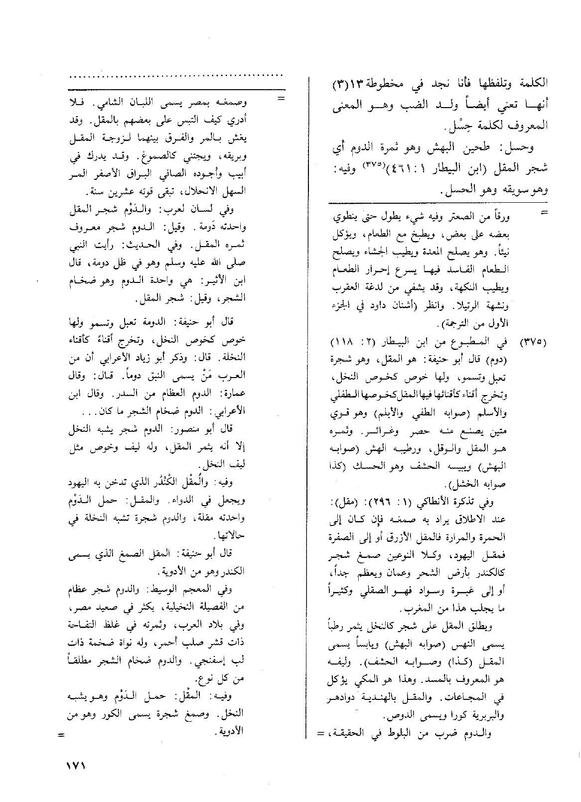 الكلمة وتلفظها فإنا نجد في مخطوطة 13 (3) إنها تعني أيضاً ولد الضب وهو المعنى المعروف لكلمة حِسْل.
