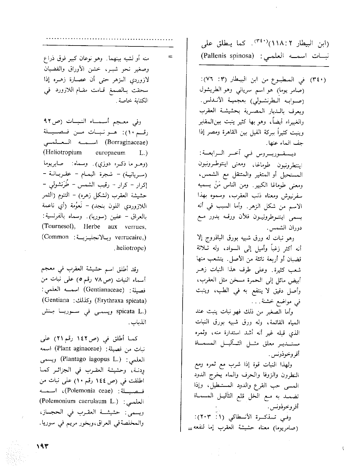 (ابن البيطار 2: 118) زكما يطلق على نبات اسمه العلمي: ( Pallenis spinosa)