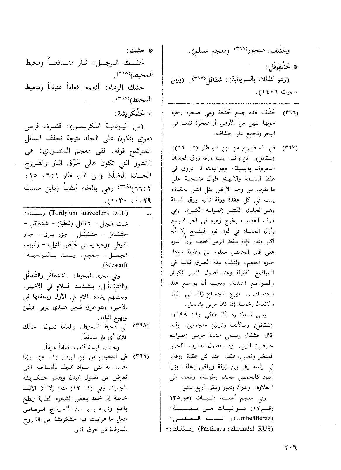 • حَشْقِيقَل: (وهو كذلك بالسريانية): شقاقل. (باين سميث 1406).