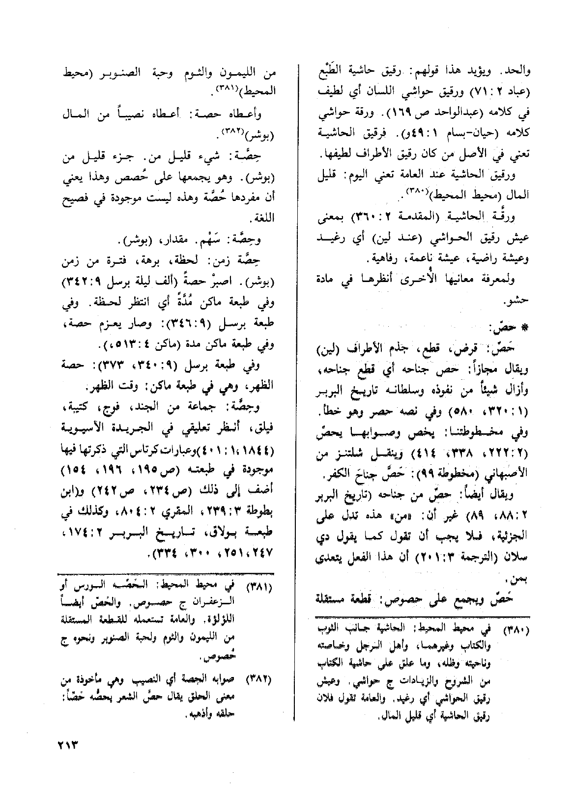 وحِصَّة: جماعة من الجند، فوج، كتيبة، فيلق، أنظر تعليقي في الجريدة الآسيوية (1844، 1: 401) وعبارات كرتاس التي ذكرتها فيها موجودة في طبعته (ص195، 196، 154) أضف إلى ذلك (ص234، ص242) و (ابن بطوطة 3: 239، المقري 2: 804، وكذلك طبعة بولاق، تاريخ البربر 2: 174: 247، 251، 300، 334).