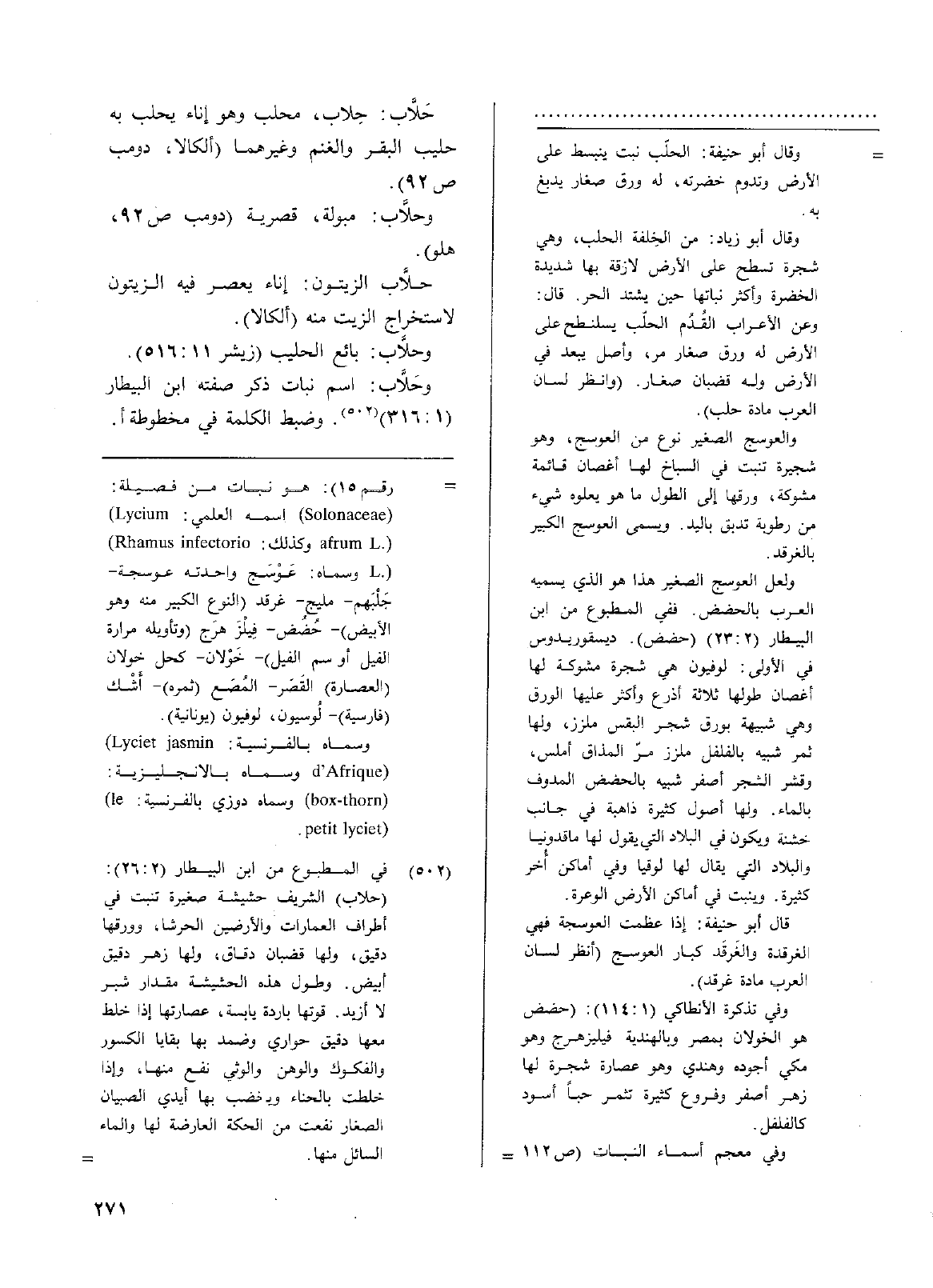 وحَلاَّب: اسم نبات ذكر صفته ابن البيطار (1: 316) وضبط الكلمة في مخطوطة أ