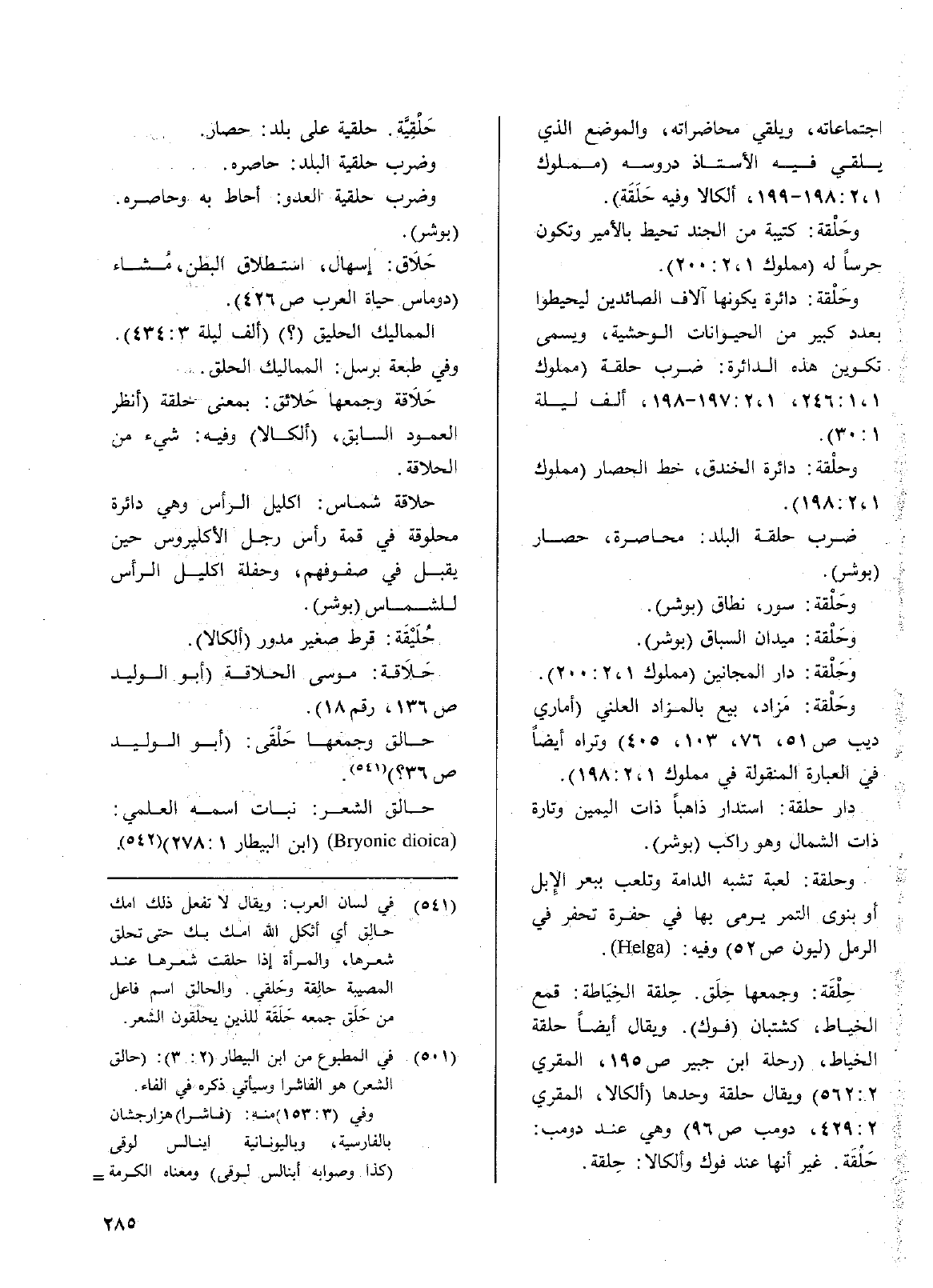 وحَلْقة: دار المجانين (مملوك 1، 2: 200) وحَلْقة: مَزاد، بيع بالمزاد العلني (أماري ديب ص51، 76، 103، 405) وتراه أيضاً في العبارة المنقولة في مملوك 1، 2: 198).