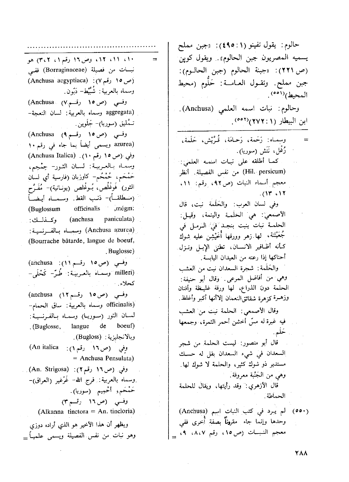 وحالوم: نبات اسمه العلمي ( Anchusa) ابن البيطار (1: 272).