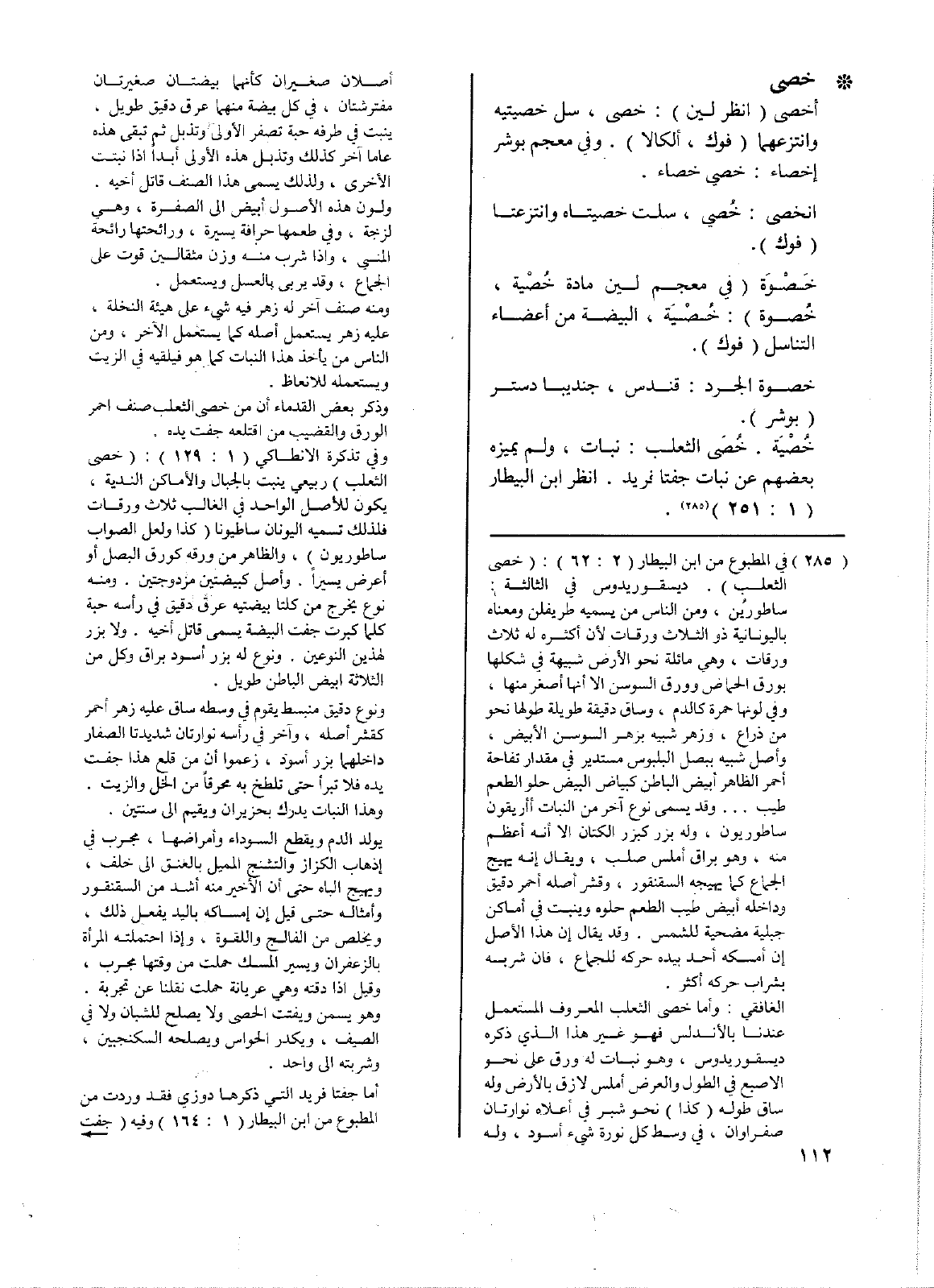 خُصْيَة. خُصَى الثعلب: نبات، ولم يميزه بعضهم عن نبات فريد. انظر ابن البيطار (1: 251).