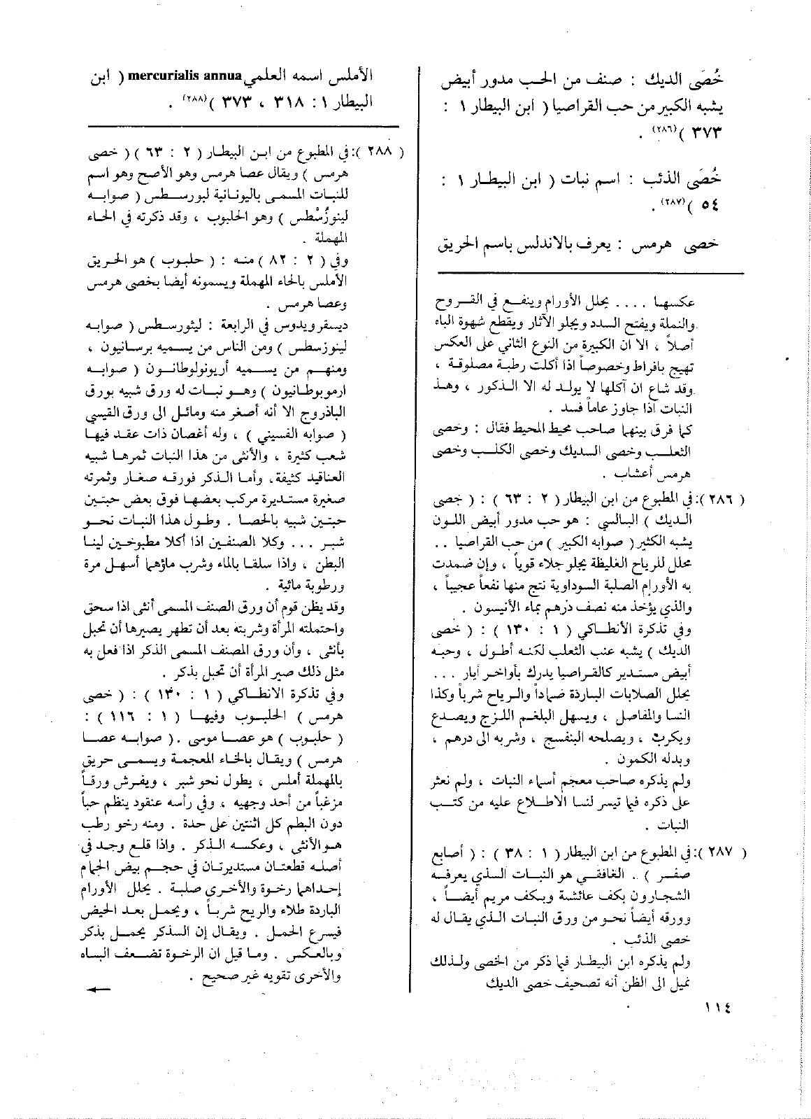 خصى هرمس: يعرف بالأندلس باسم الحريق الأملس اسمه العلمي: mercurialis annua ( ابن البيطار 1: 318، 373).