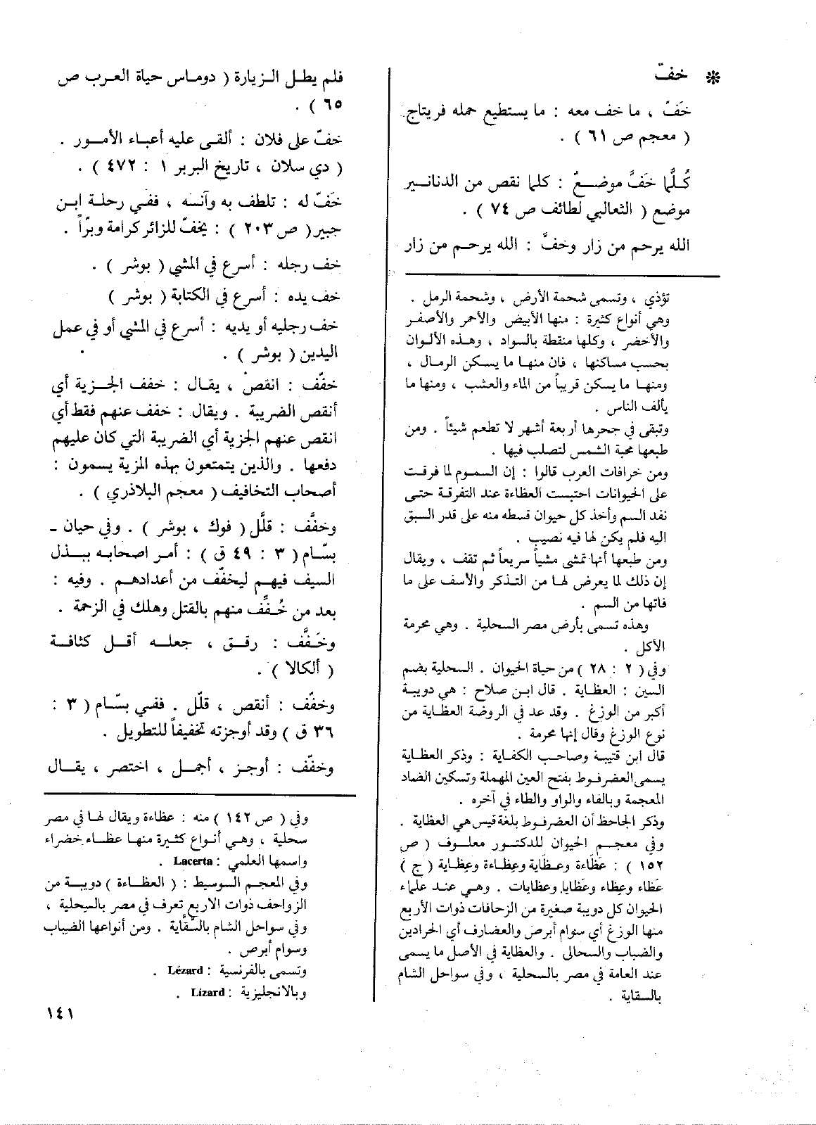 • خفّ: خَفّ، ما خف معه: ما يستطيع حمله فريتاج (معجم ص61).