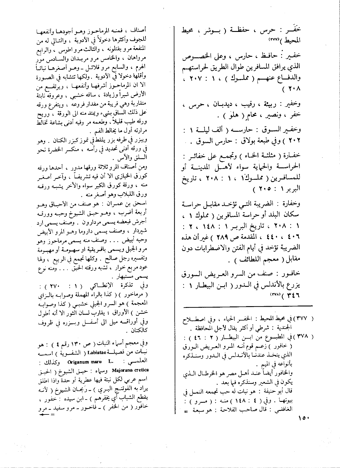 وخفارة: الضريبة التي تؤخذ مقابل حراسة سكان البلد أو حراسة المسافرين (مملوك1، 1: 208، تاريخ البربر 1: 148، 2: 406، 404، المقدمة ص289) غير أن هذه الضريبة تؤخذ في أيام الفتن والاضطرابات دون مقابل (معجم اللطائف).