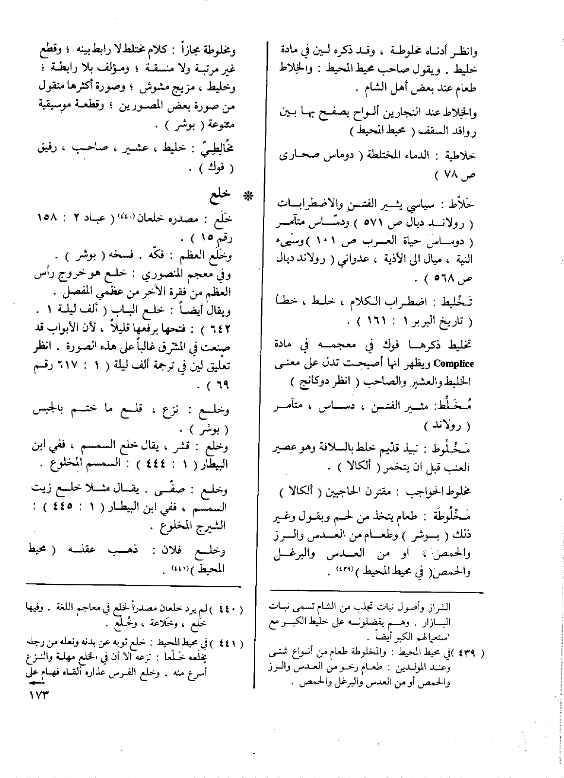 خَلاّط: سياسي يثير الفتن والاضطرابات (رولاند ديال ص571) ودسّاس متآمر (دوماس حياة العرب ص101) وسيئ النية، ميال إلى الأذية، عدواني (رولاند ديال ص568).