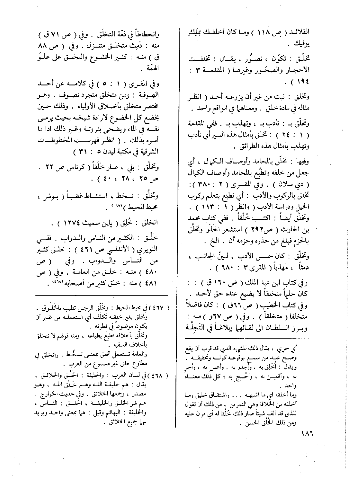 وفي كتاب ابن عبد الملك (ص160 ق): كان حليماً متخلقاً لا يضيع عنده حق لأحد. وفي كتاب الخطيب (ص66 ق): كان فاضلا متخلفاً (متخلقاً). وفي (ص67 و) منه: وبرز السلطان إلى لقائهما إبلاغاً في التَجِلَّة وانحطاطاً في ذّمة التخلَق. وفي (ص71 ق) منه: دَمِث متخلق متنزل. وفي (ص88 ق) منه: كثير الخشوع والتخلق على علّو الهمّة.