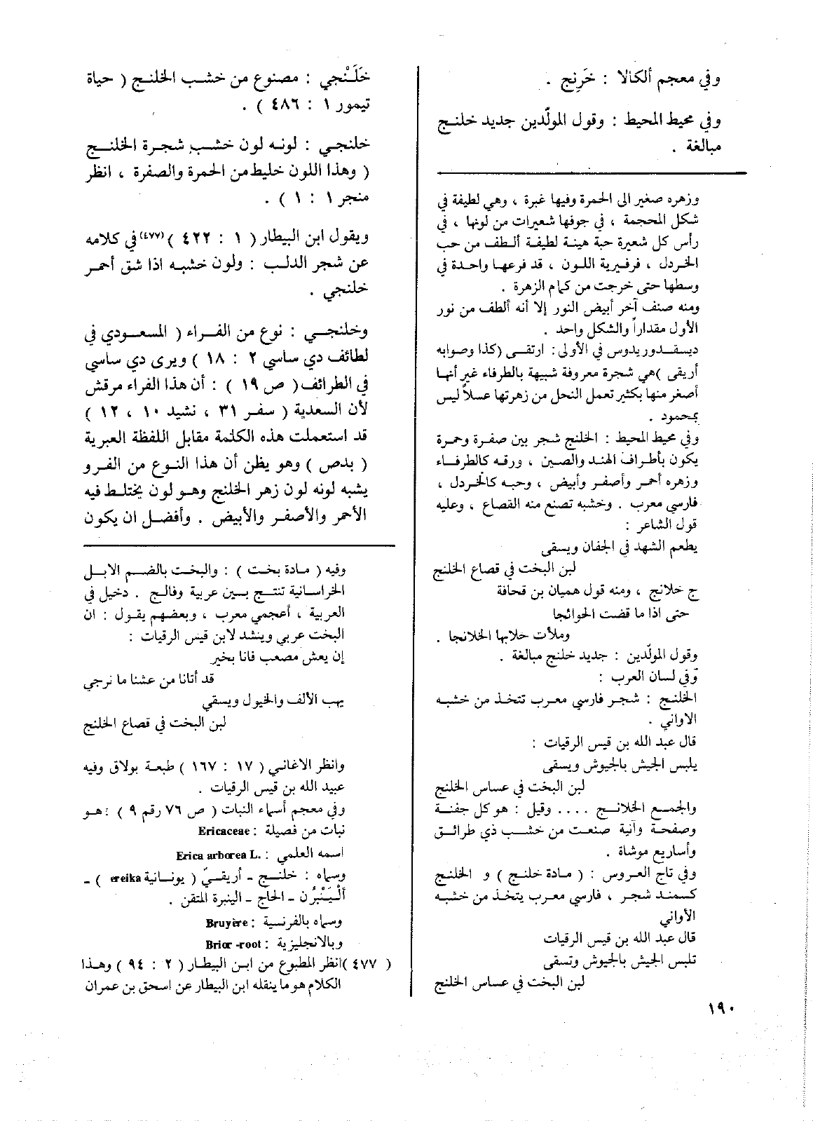ويقول ابن البيطار (1: 422) في كلامه عن شجر الدلب: ولون خشبه إذا شق أحمر خلنجي.