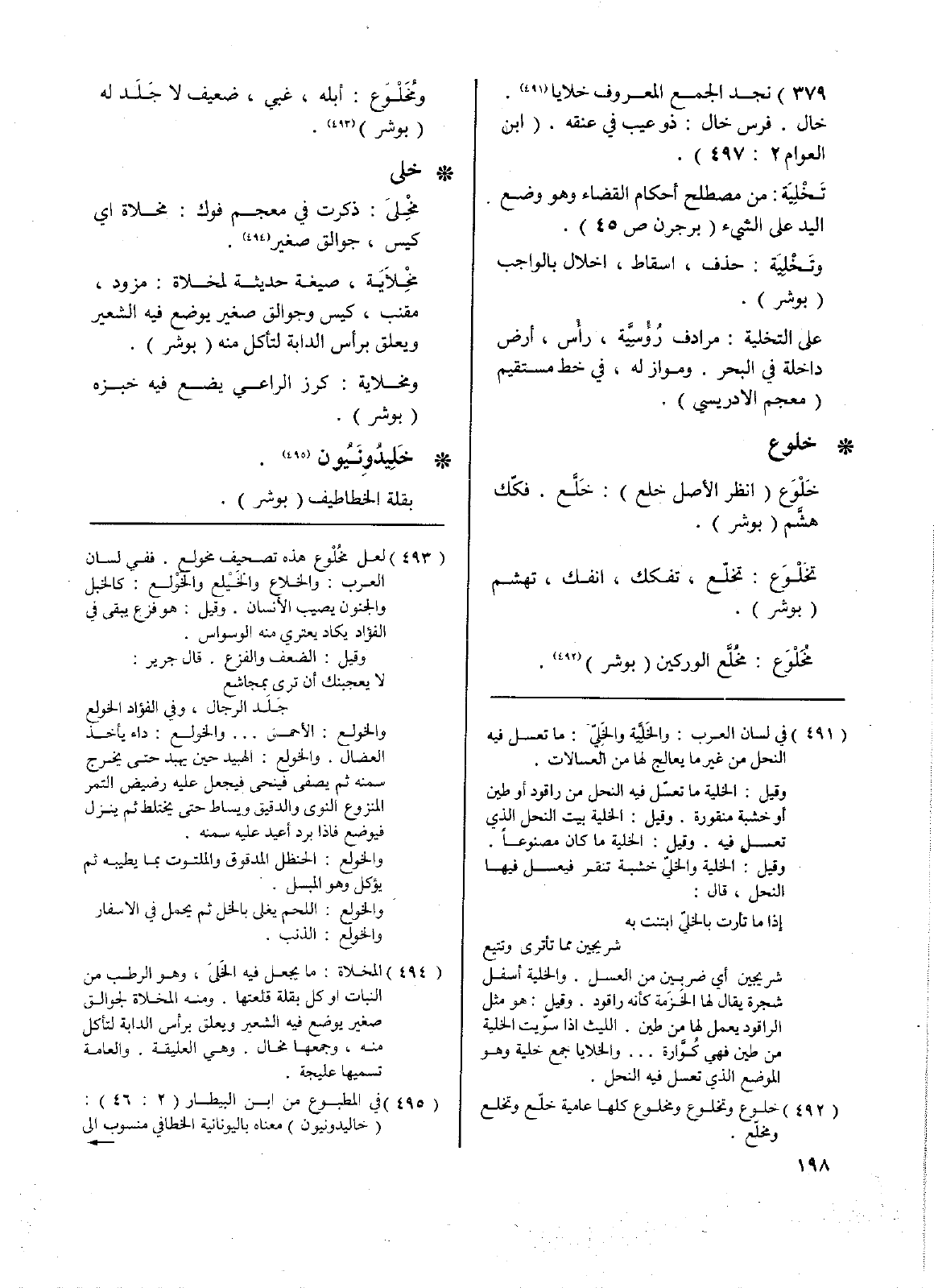 379) نجد الجمع المعروف خلايا. خال. فرس خال: ذو عيب في عنقه. (ابن العوام 2: 497).