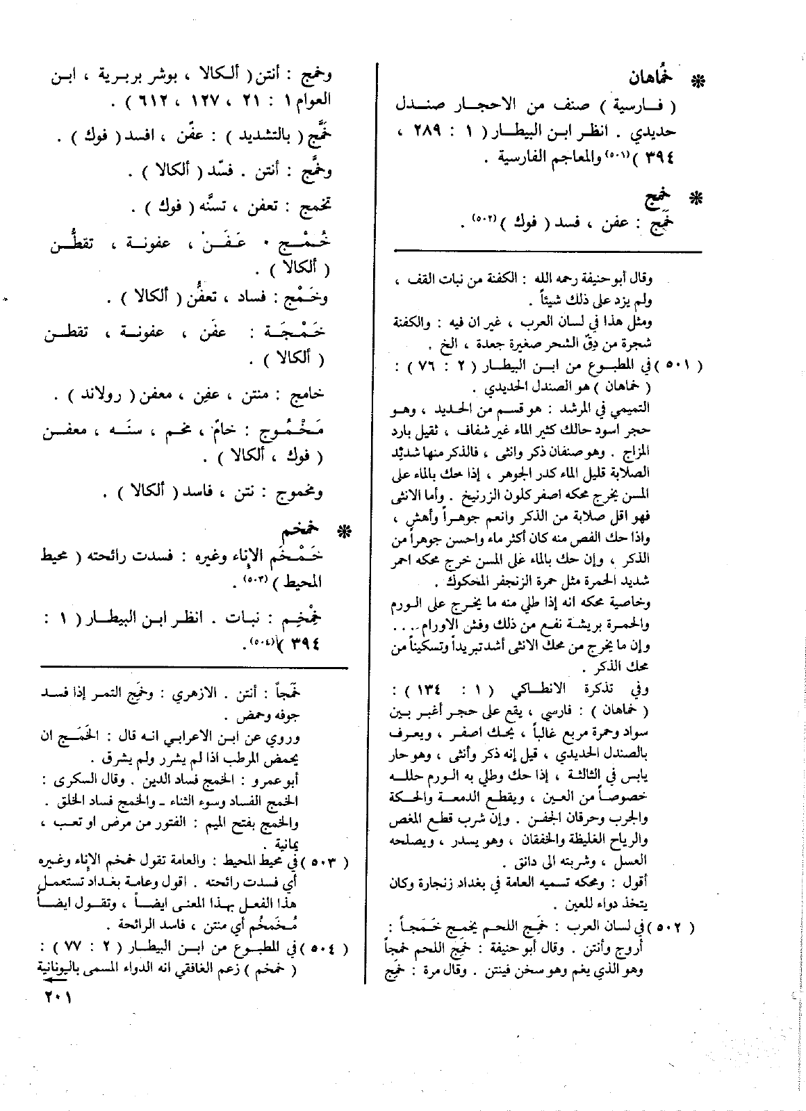 • خماهان: (فارسية) صنف من الأحجار صندل حديدي. انظر ابن البيطار (1: 289، 394) والمعاجم الفارسية.