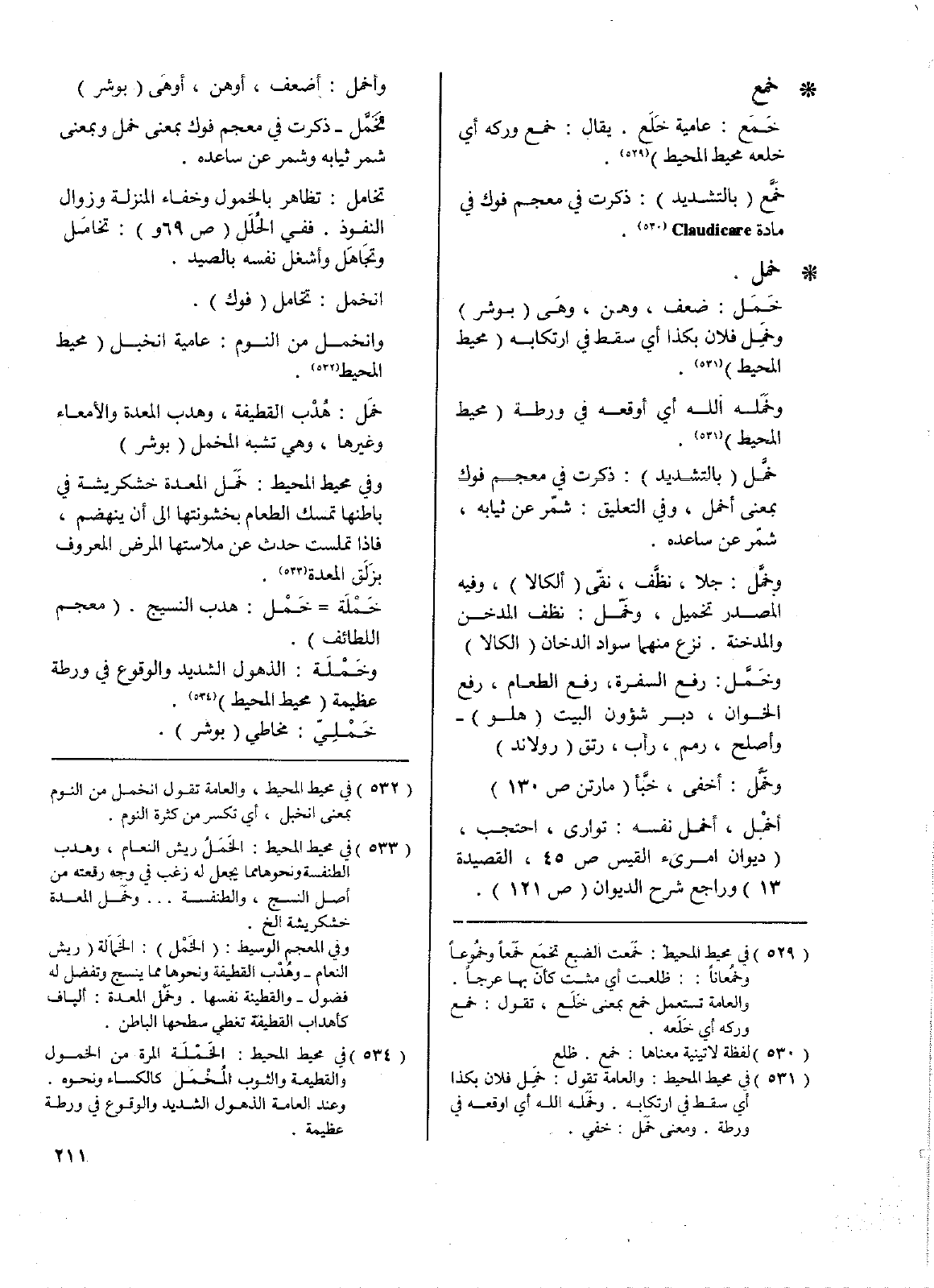 خَّمل (بالتشديد): ذكرت في معجم فوك بمعنى أخمل، وفي التعليق: شمّر عن ثيابه، شمر عن ساعده.