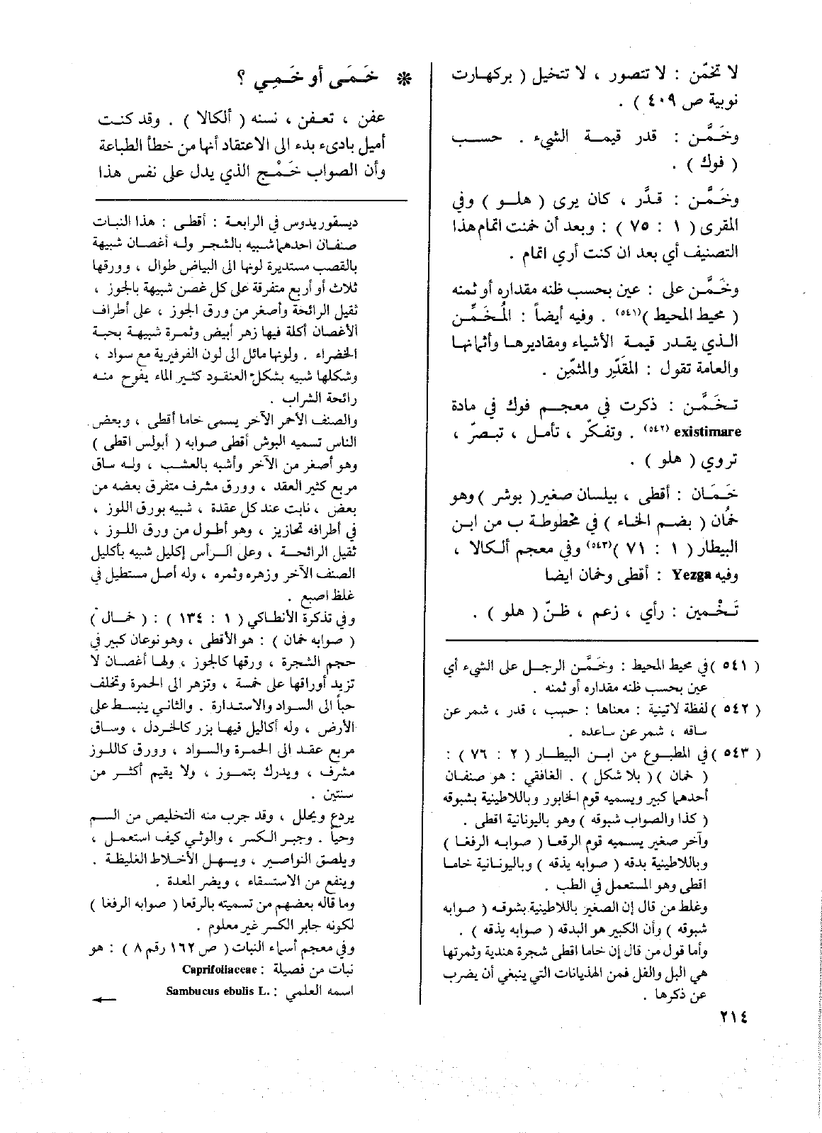 وتخَمَّن: ذكرت في معجم فوك في مادة existimare. وتفكّر، تأمل، تبصّر، تروى (هلو).