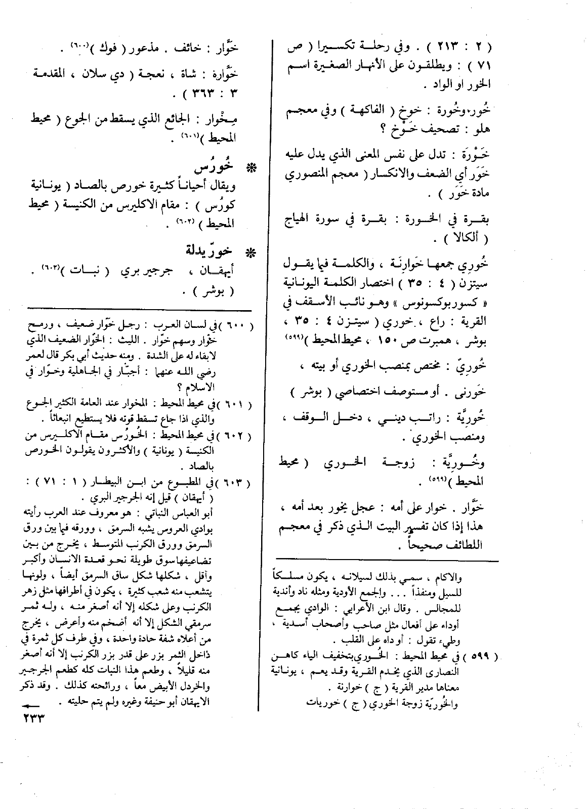 (2: 213). وفي رحلة تكسيرا (ص71): ويطلقون على الأنهار الصغيرة اسم الخور أو الواد.