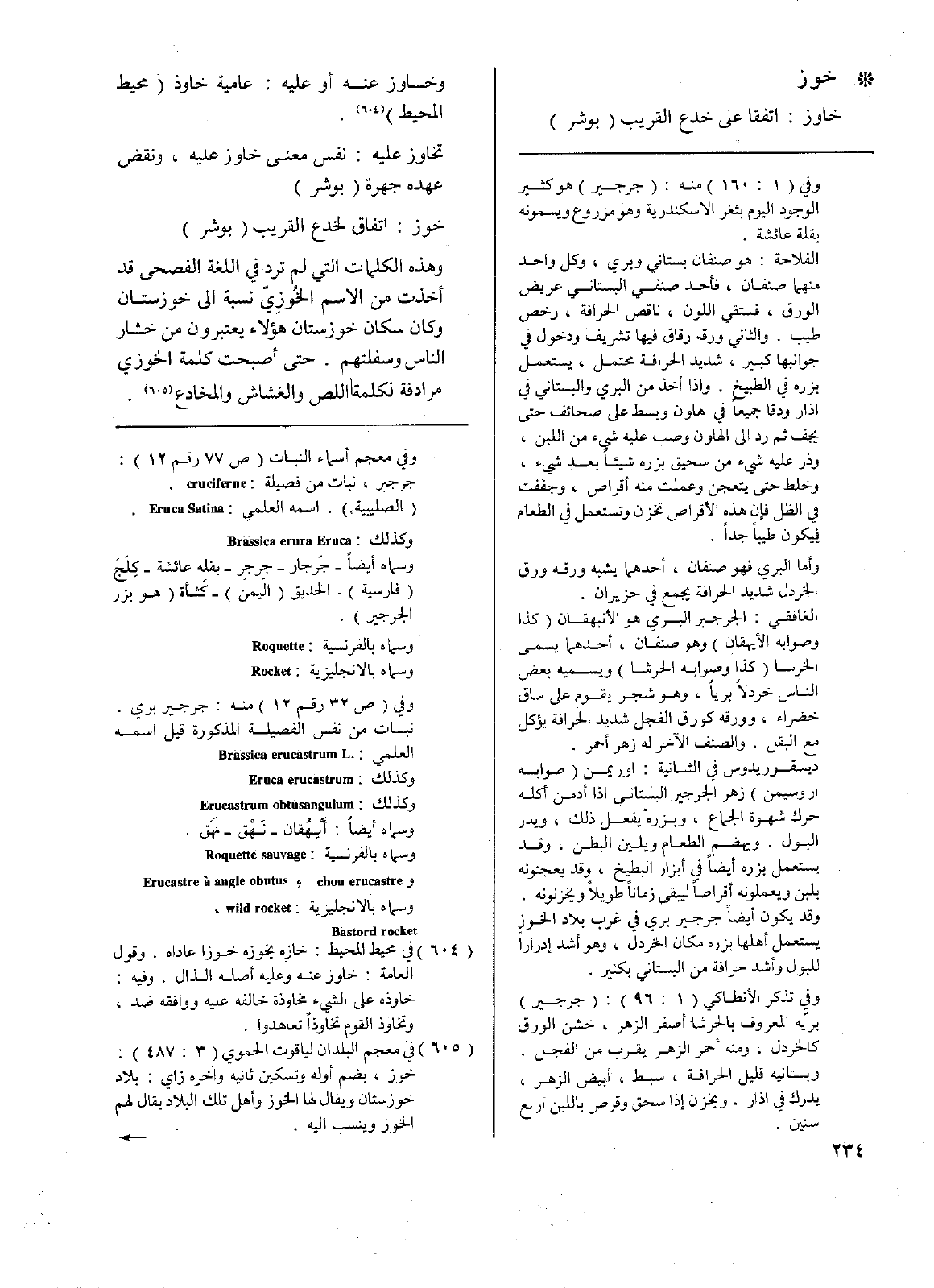 وهذه الكلمات التي لم ترد في اللغة الفصحى قد أخذت من الاسم الخوزي نسبة إلى خوزستان وكان سكان خوزستان هؤلاء يعتبرون من خشار الناس وسلفتهم. حتى أصبحت كلمة الخوزي مرادفه لكلمة اللص والغشاش والمخادع.