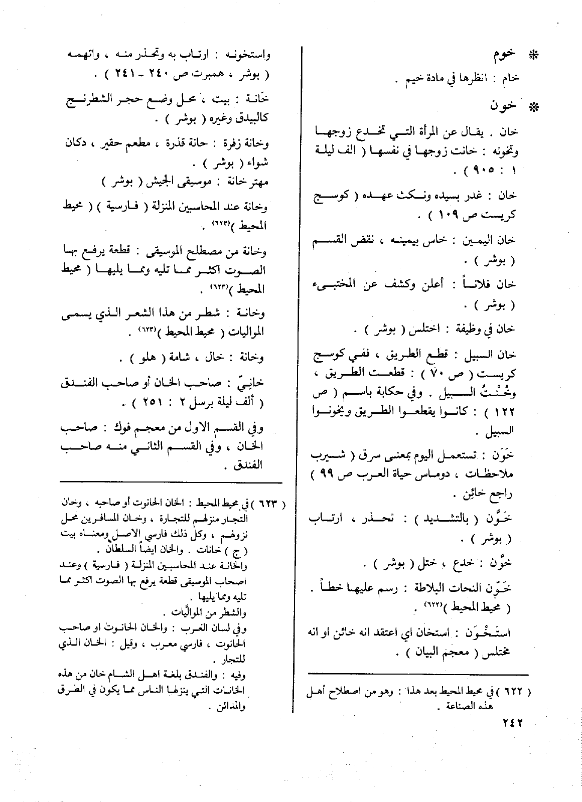 • خون: خان. يقال عن المرأة التي تخدع زوجها وتخونه: خانت زوجها في نفسها (ألف ليلة 1: 905).