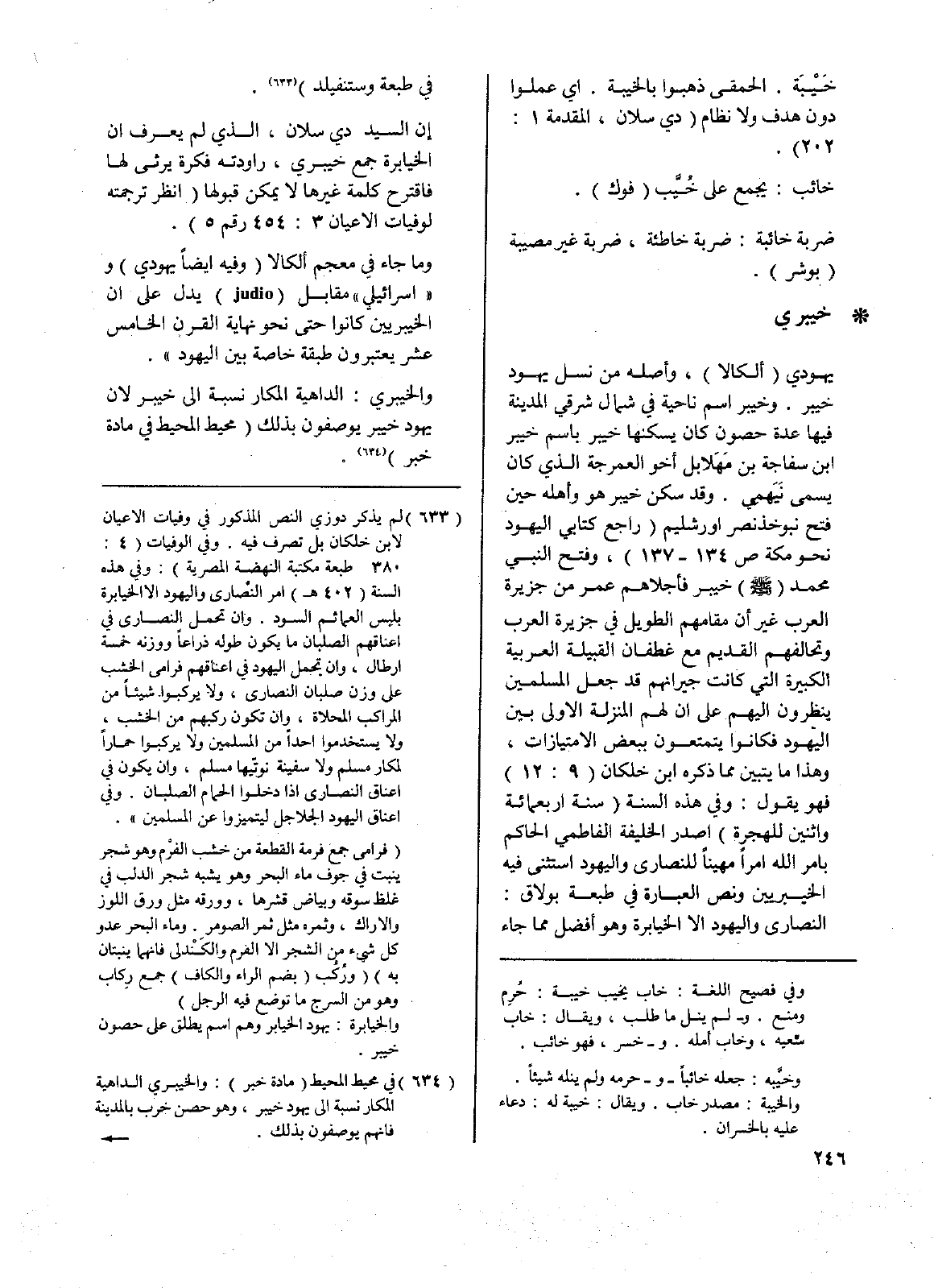 إن السيد دي سلان، الذي لم يعرف إن الخيابرة جمع خيبري، راودته فكرة يرثى لها فاقترح كلمة غيرها لا يمكن قبولها (انظر ترجمته لوفيات الأعيان 3: 454 رقم5).