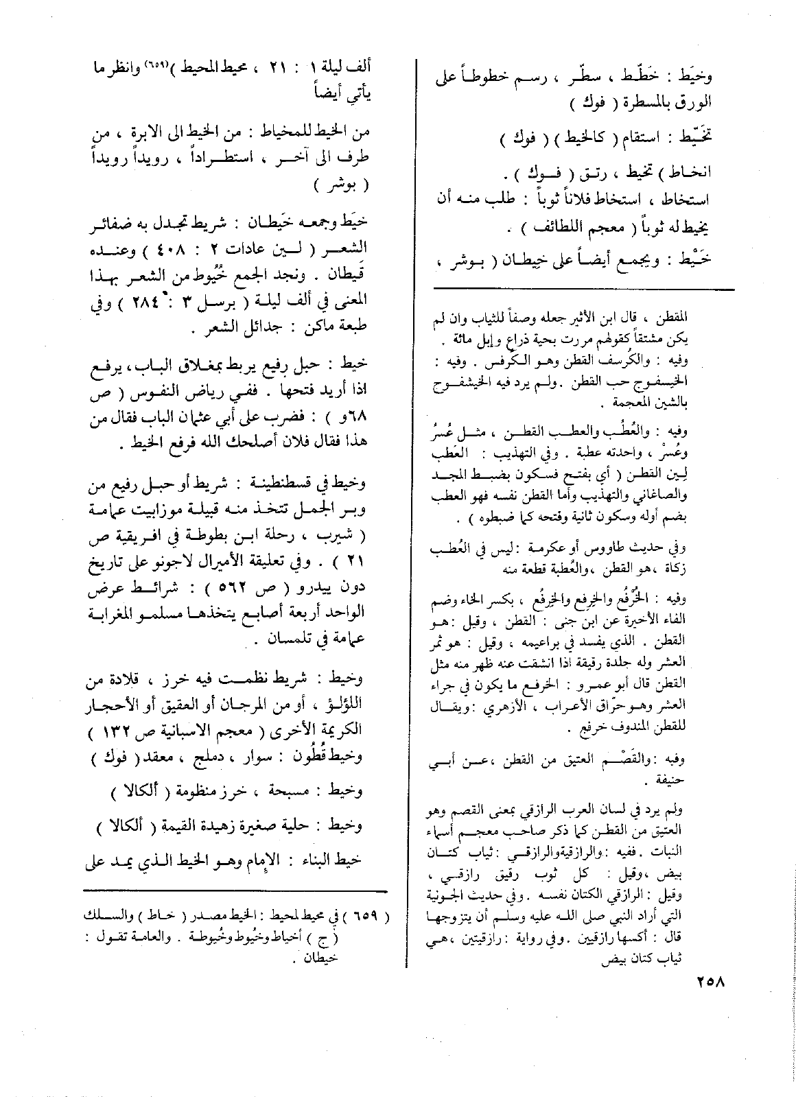 خَيْط: ويجمع أيضاً على خيطان (بوشر، ألف ليلة 1: 21، محيط المحيط) وانظر ما يأتي أيضاً.