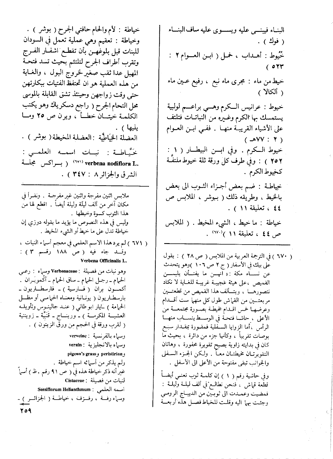 خَيَّاطة: نبات اسمه العلمي: verbena nodiflora L. ( براكس مجلة الشرق والجزائر 8: 347).