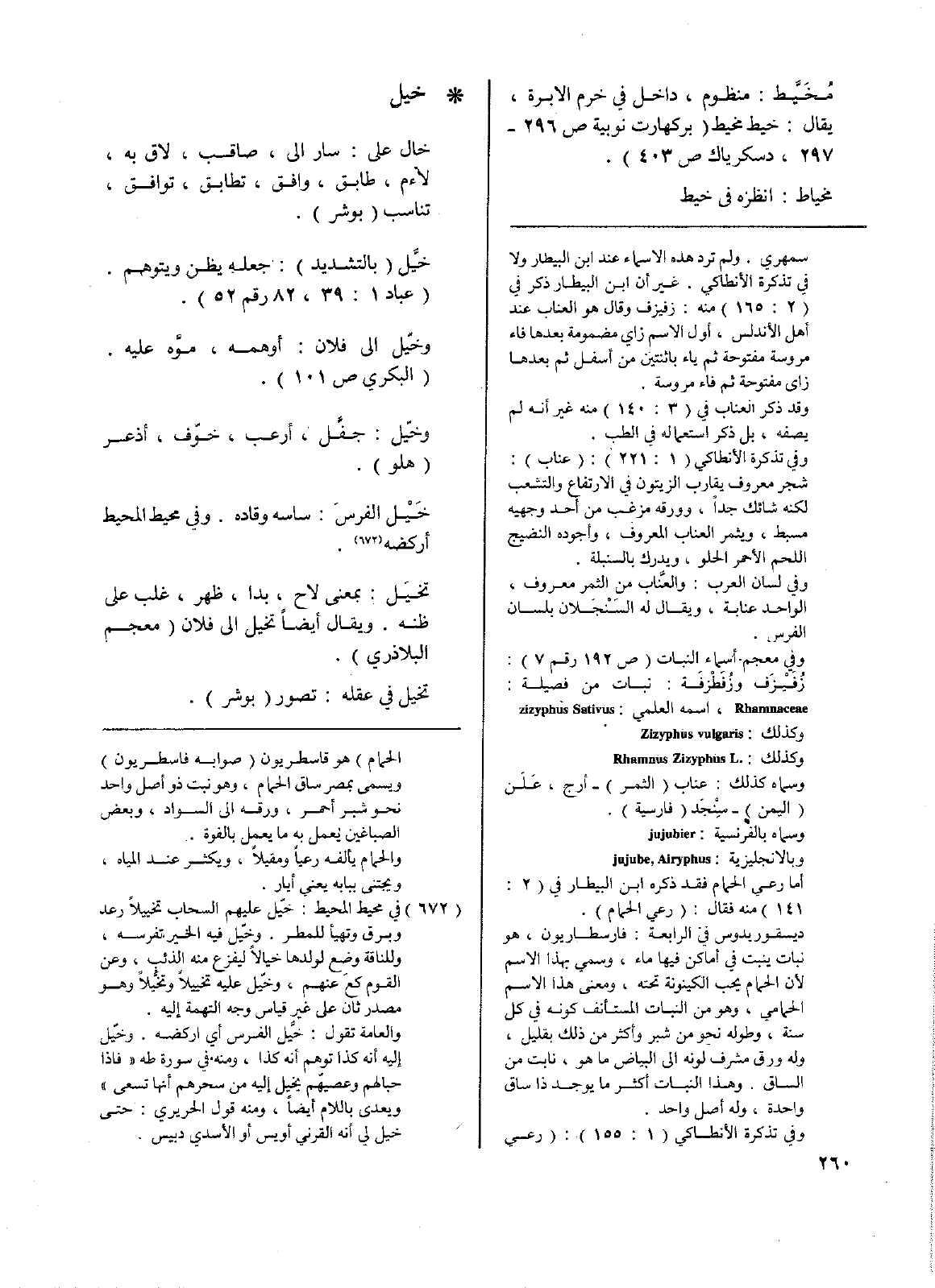 • خيل: خال على: سار إلى، صاقب، لاق به، لاءم، طابق، وافق، تطابق، توافق، تناسب (بوشر).