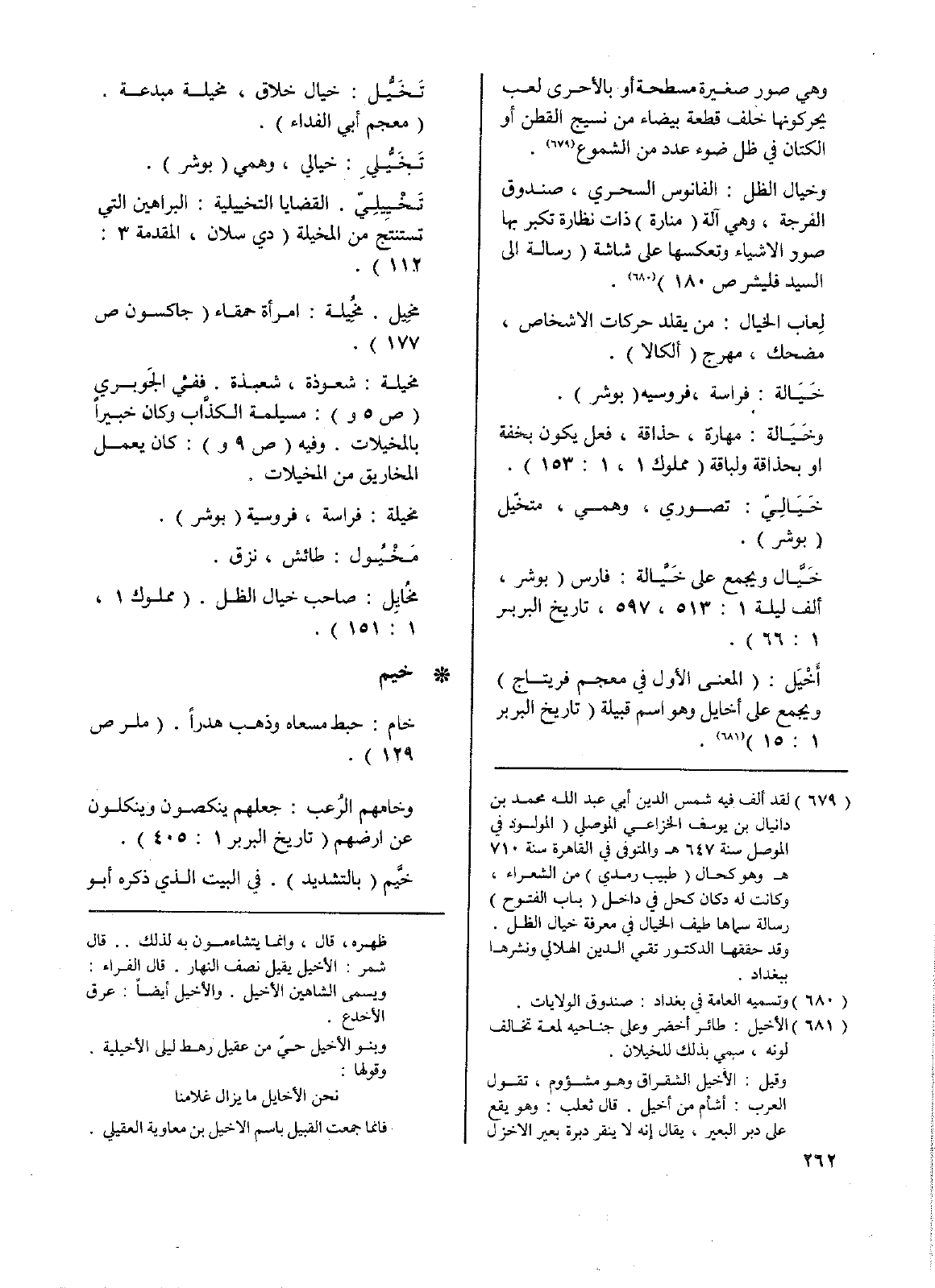 وخيال الظل: الفانوس السحري، صندوق الفرجة، وهي آلة (منارة) ذات نظارة تكبر بها صور الأشياء وتعكسها على شاشة (رسالة إلى السيد فليشر ص180).