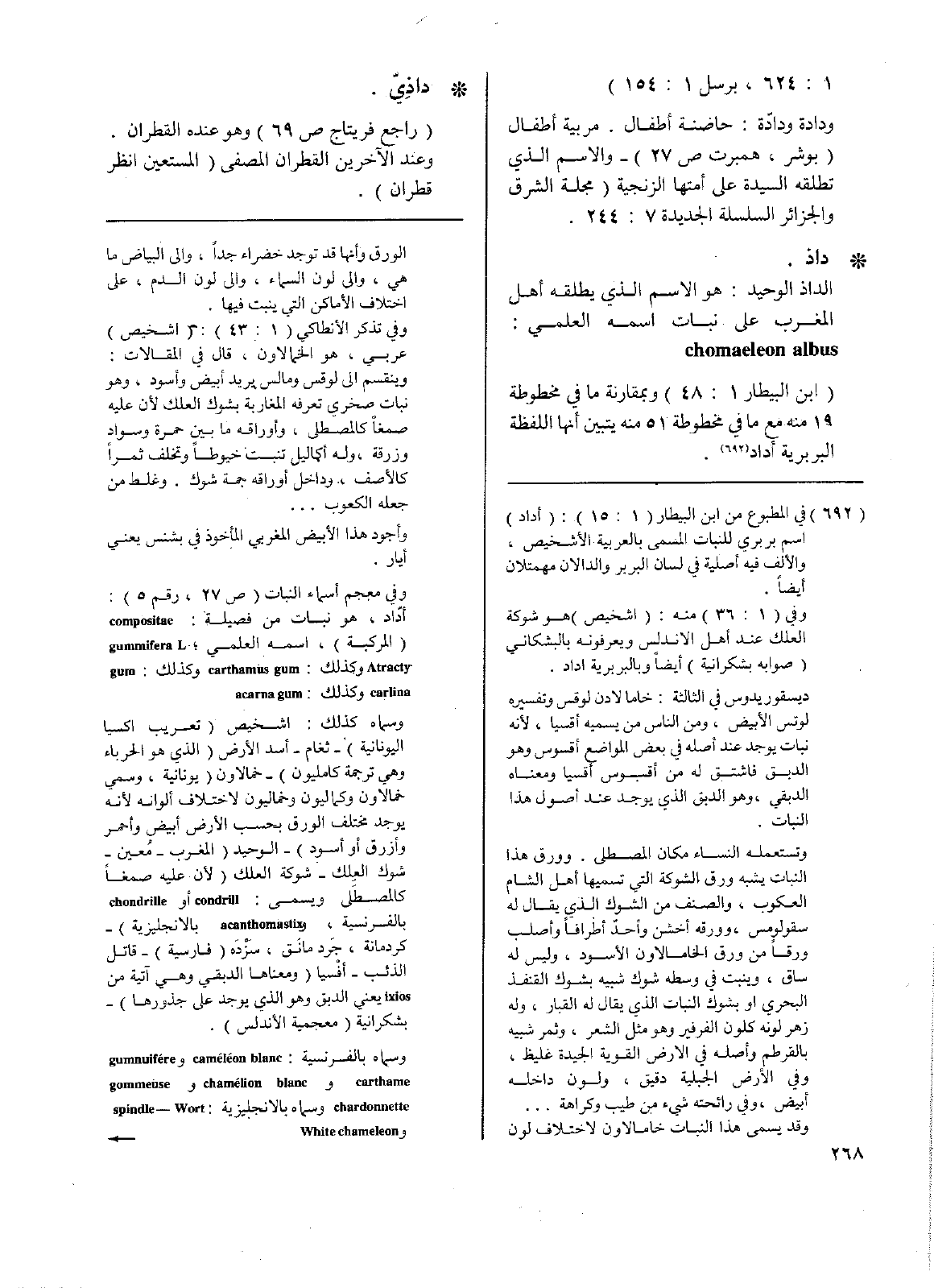 • داذ: الداذ الوحيد: هو الاسم الذي يطلقه أهل المغرب على نبات اسمه العلمي: chomaeleon albus.