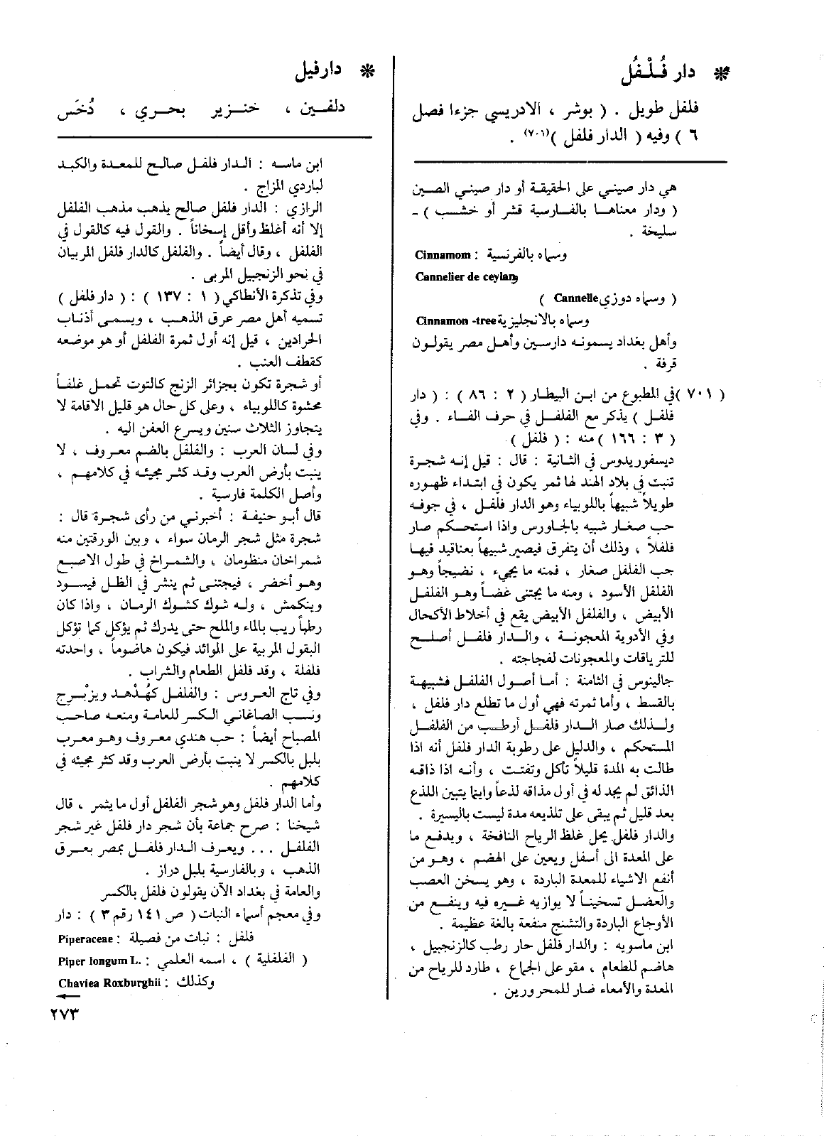 • دار فُلْفُل: فلفل طويل. (بوشر، الادريسي جزء 1، فصل 6 وفيه الدار فلفل).