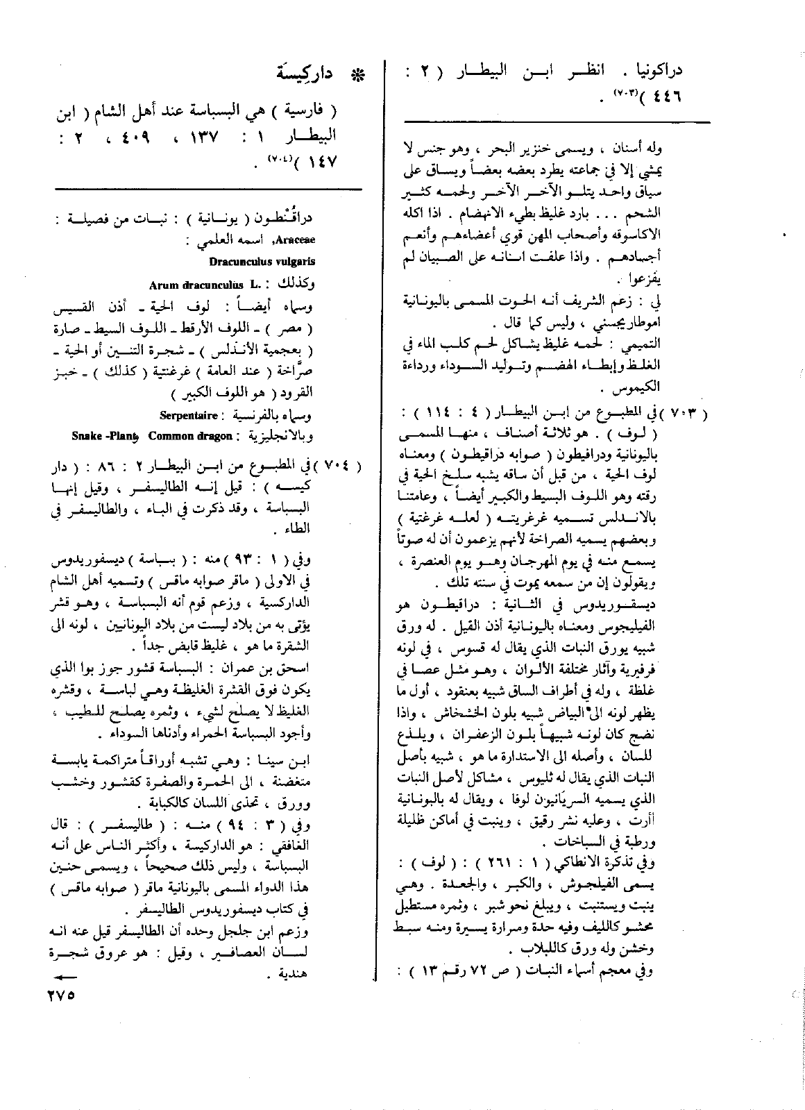 • داركسية: (فارسية) هي البسباسة عند أهل الشام (ابن البيطار 1: 137، 409، 2: 147).