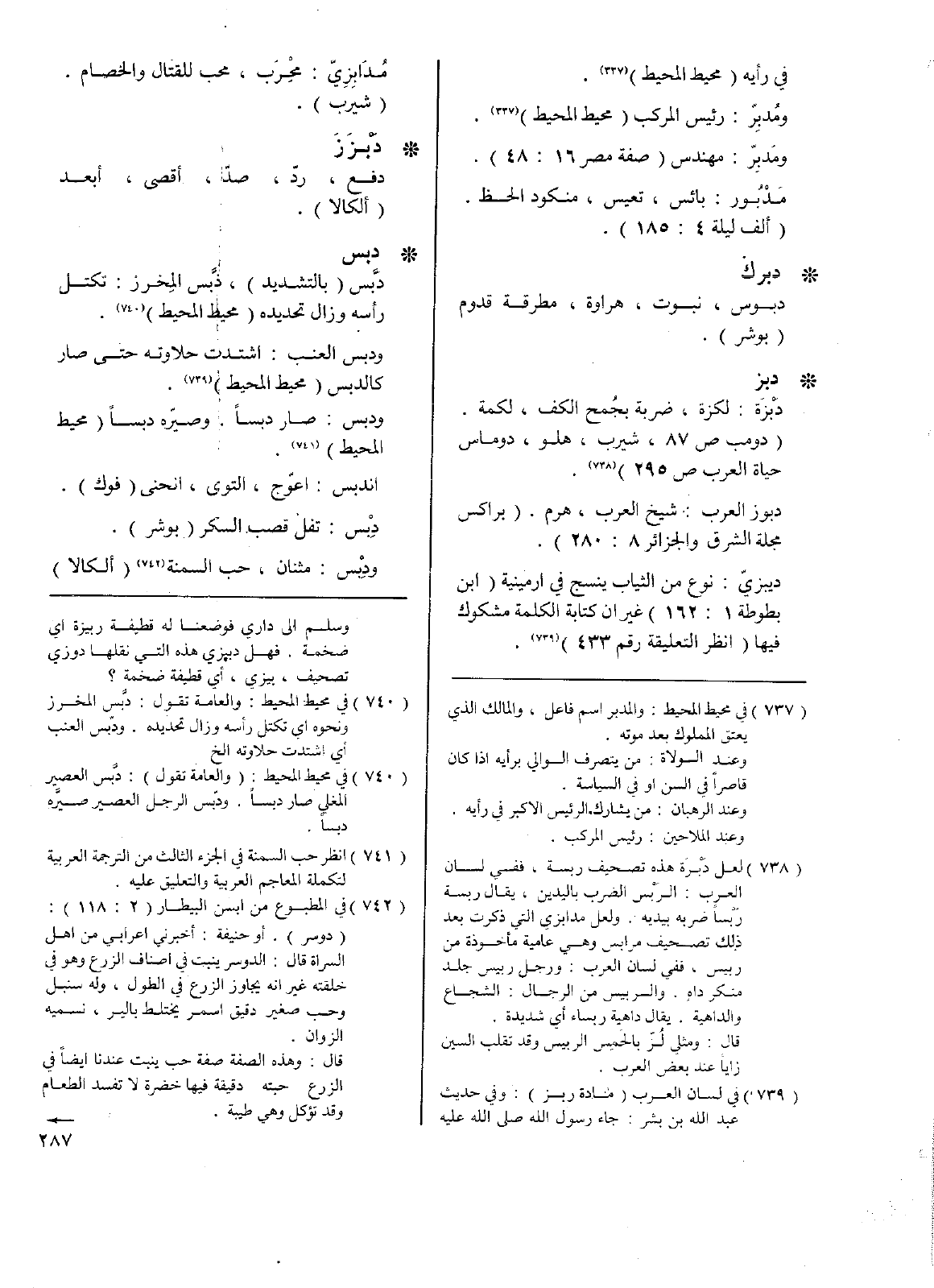 ديبزي: نوع من الثياب ينسج في أرمينية (ابن بطوطة 1: 162) غير أن كتابة الكلمة مشكوك فيها (انظر التعليقة رقم 433).