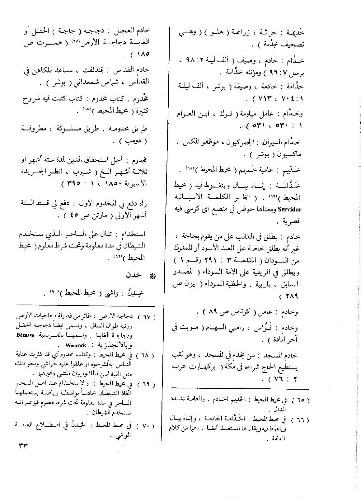 خادم: يطلق في الغالب على من يقوم بحاجة، غير إنه يطلق خاصة على العبد الأسود أو المملوك من السودان (المقدمة 3: 291 رقم1) ويطلق في أفريقية على الأمة السوداء (المصدر السابق، باربية. والحظية السوداء (ليون ص289).