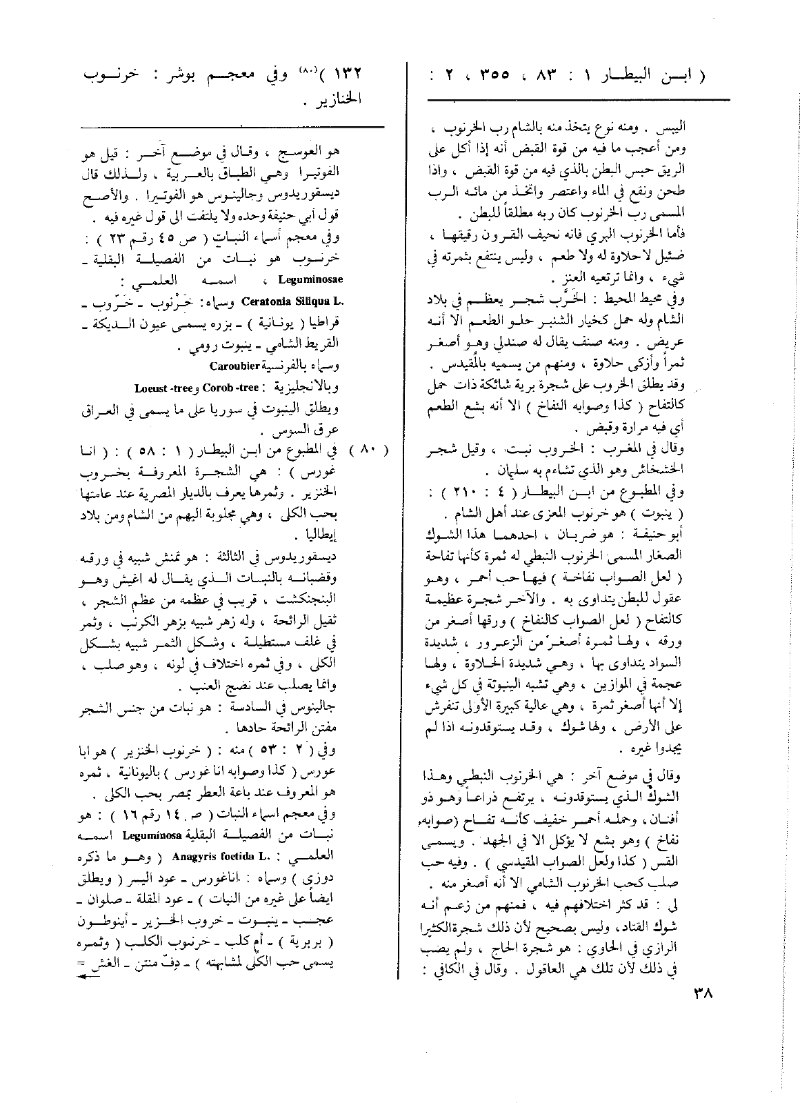 (ابن البيطار 1: 83، 355، 2: 132) وفي معجم بوشر: خرنوب الخنازير.