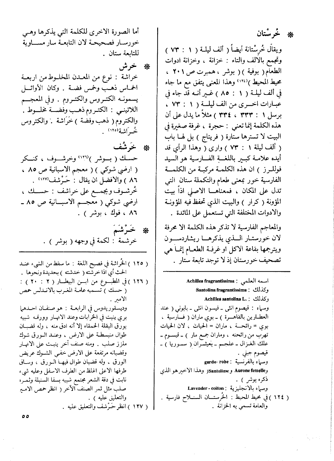 والمعاجم الفارسية لا تذكر هذه الكلمة إلا محرفة لأن خوستار الذي يذكرها ريشاردسون وترجمها بقاعة الأكل أو غرفة الطعام إنما هي تصحيف خورستان إذ لا توجد تابعة ستار.