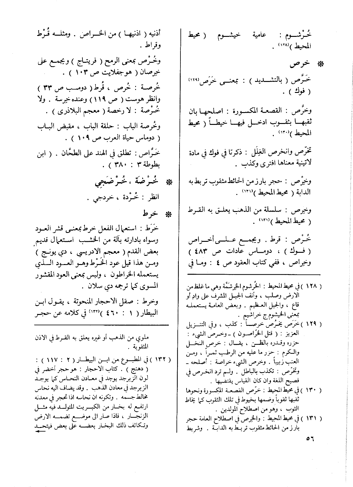 خُرصة: خُرص، قُرط (دومب ص33) وانظر هوست (ص119) وعنده خِرسة. ولا خُرصة: لا رخصة (معجم البلاذري).