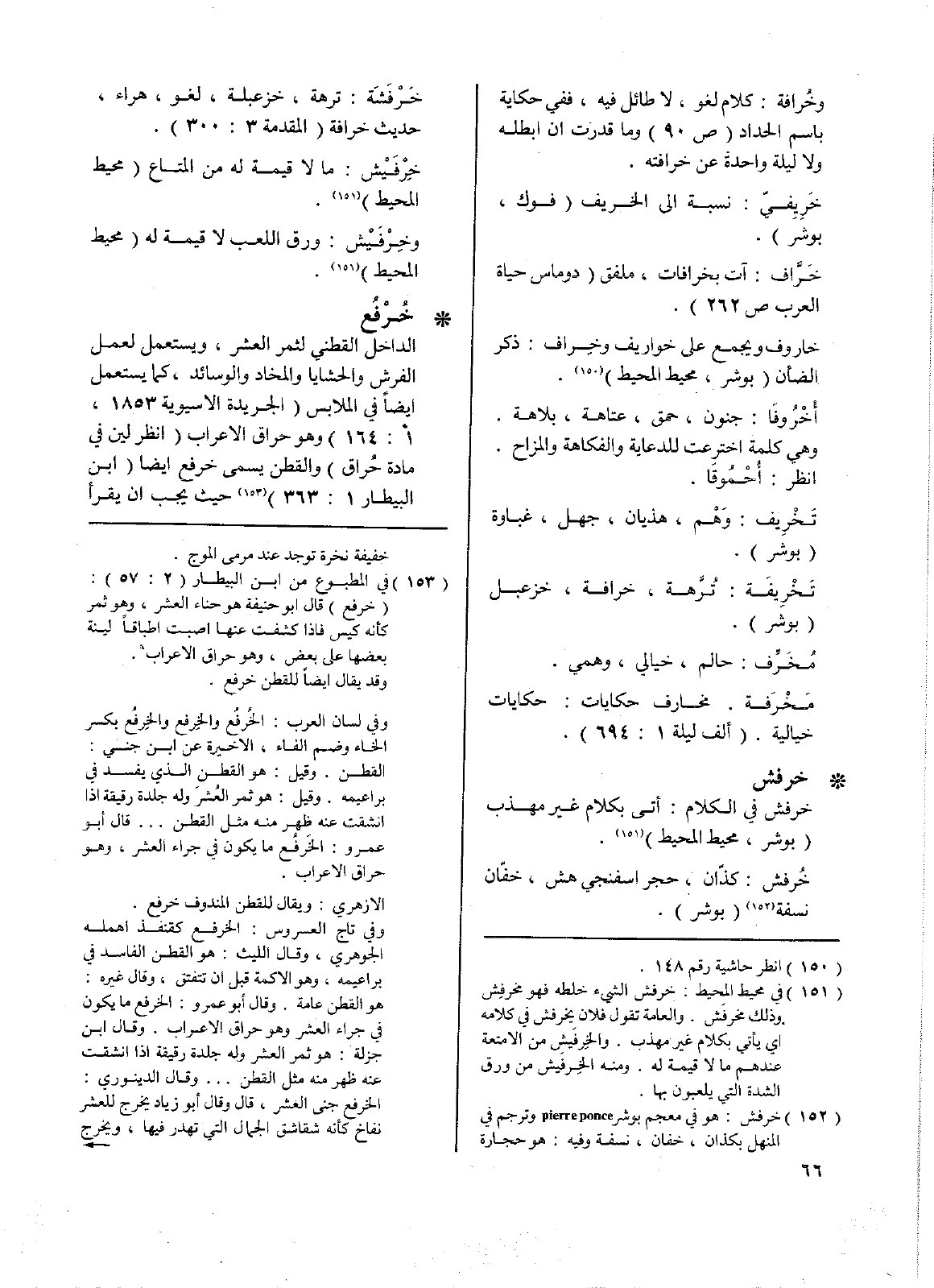 • خُرْفُع: الداخل القطني لثمر العشر، ويستعمل لعمل الفرش والحشايا والمخاد والوسائد، كما يستعمل أيضاً في الملابس (الجريدة الآسيوية 1853، 1: 164) وهو حراق الأعراب (انظر لين في مادة حراق) والقطن يسمى خرفع أيضاً (ابن البيطار 1: 363) حيث يجب أن يقرأ