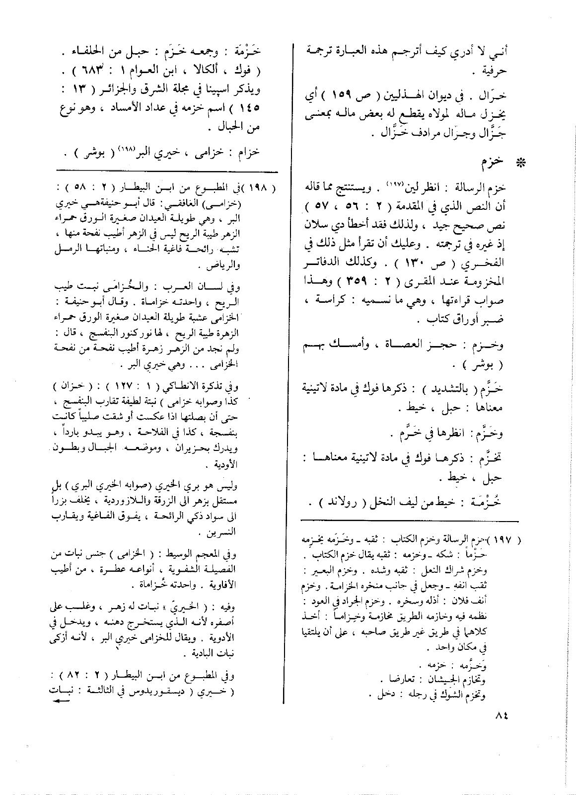 • خزم: خزم الرسالة: انظر لين. ويستنتج مما قاله أن النص الذي في المقدمة (2: 56، 57) نص صحيح جيد، ولذلك فقد أخطأ دي سلان إذ غيره في ترجمته. وعليك أن تقرأ مثل ذلك في الفخري (ص 130). وكذلك الدفاتر المخزومة عند المقري (2: 359) وهذا صواب قراءتها، وهي ما نسميه: كراسة، ضبر أوراق كتاب.