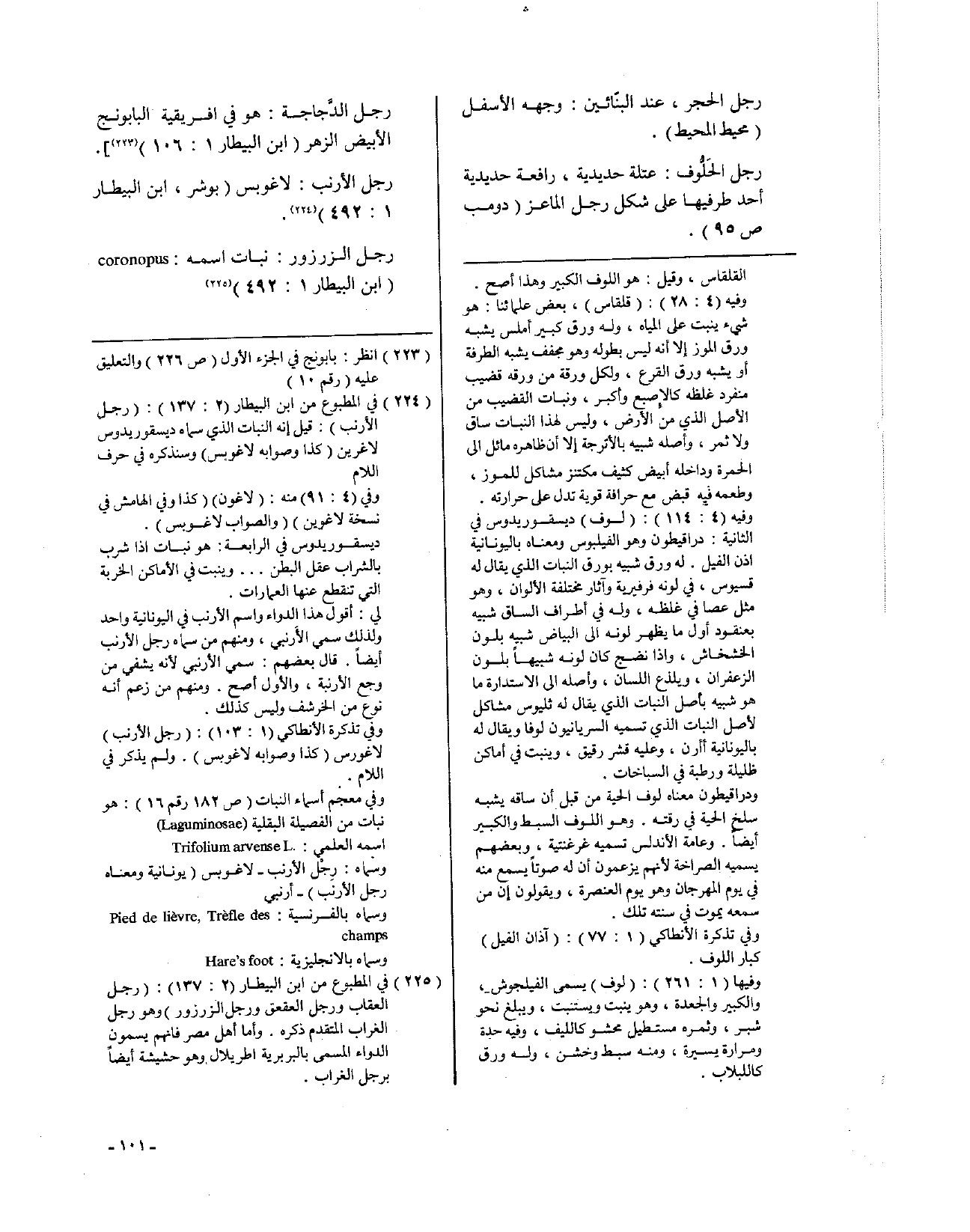رجل الزرزور: نبات اسمه coronopus ( ابن البيطار 1: 492).