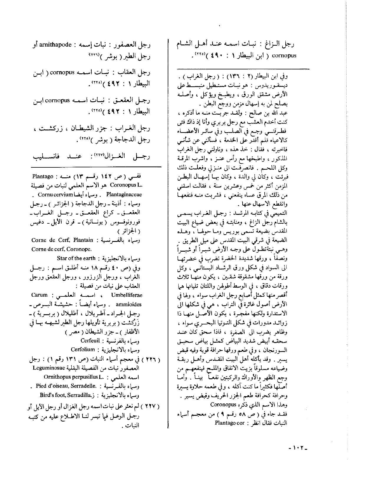 رجل العقعق: نبات اسمه coenopus ( ابن البيطار 1: 492).
