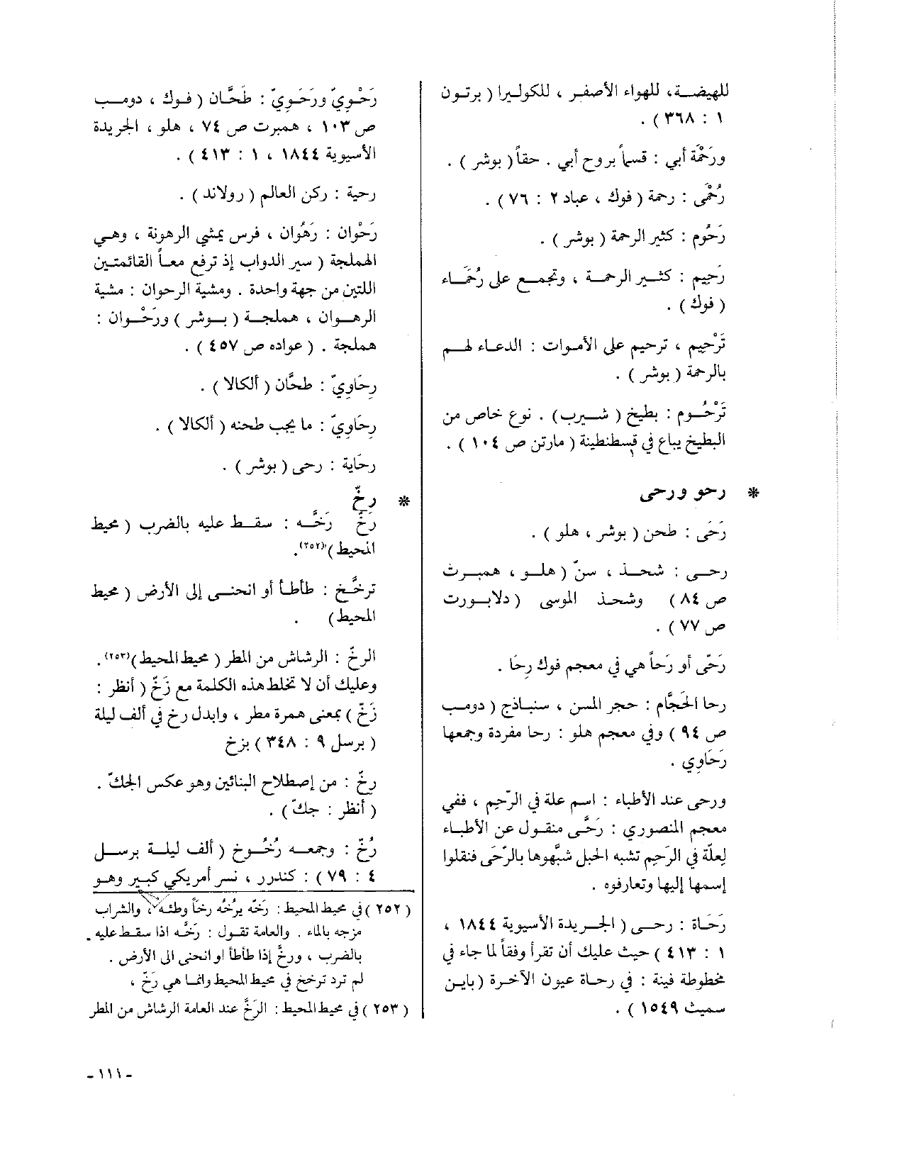 رَحَاة: رحى (الجريدة الآسيوية 1844، 1: 413) حيث عليك أن تقرأ وفقاً لما جاء في مخطوطة فينة: في رحاة عيون الآخرة (باين سميث 1549).
