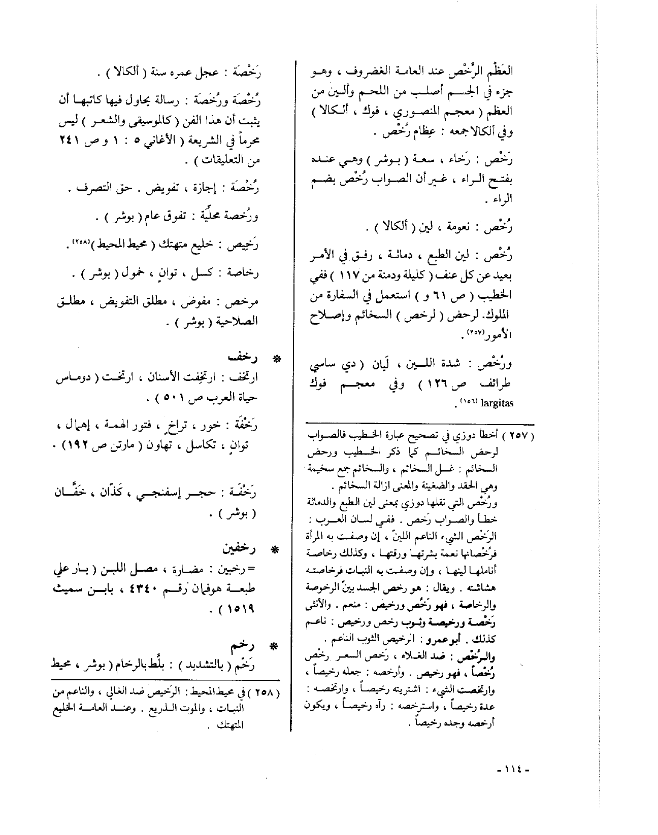 ورُخْص: شدة اللين، لَيان (دي ساسي طرائف ص126)، وفي معجم فوك largitas.