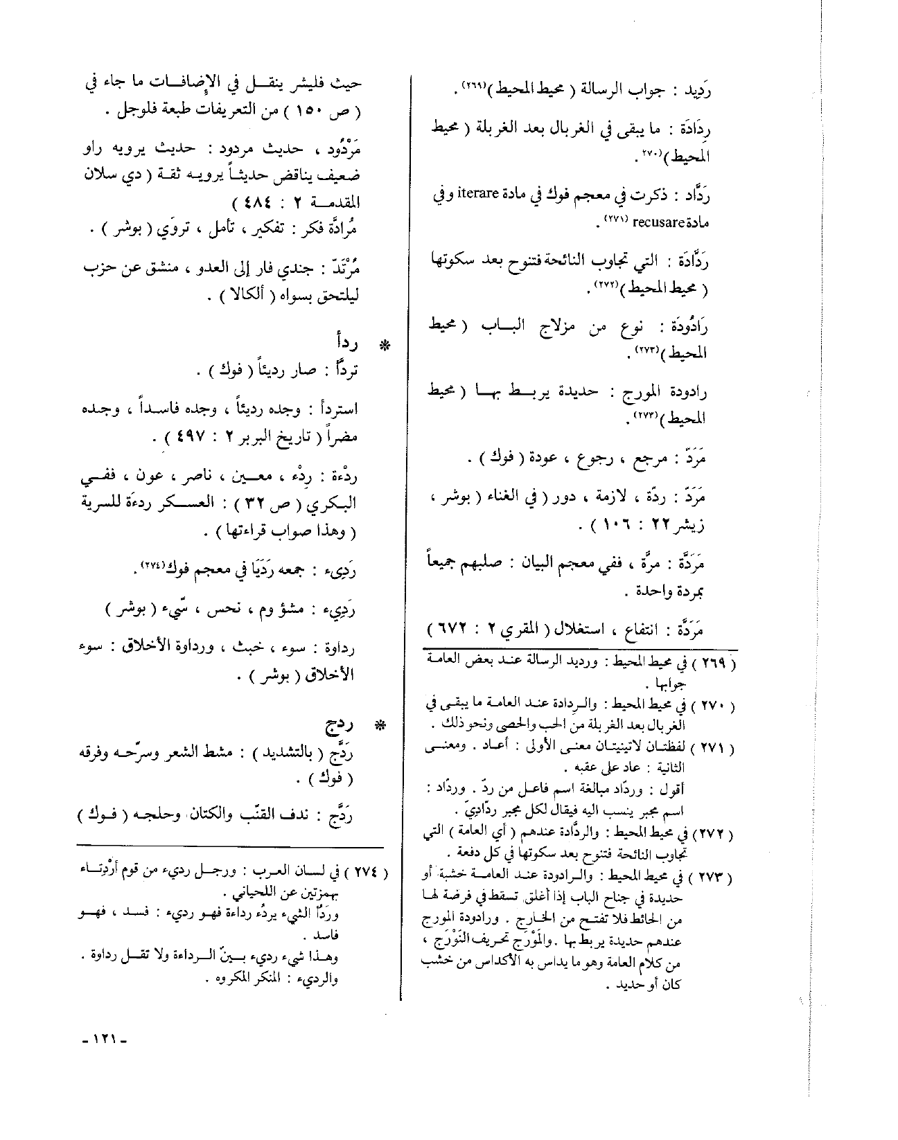 رَدَّاد: ذكرت في معجم فوك في مادة iterare وفي مادة recusare.