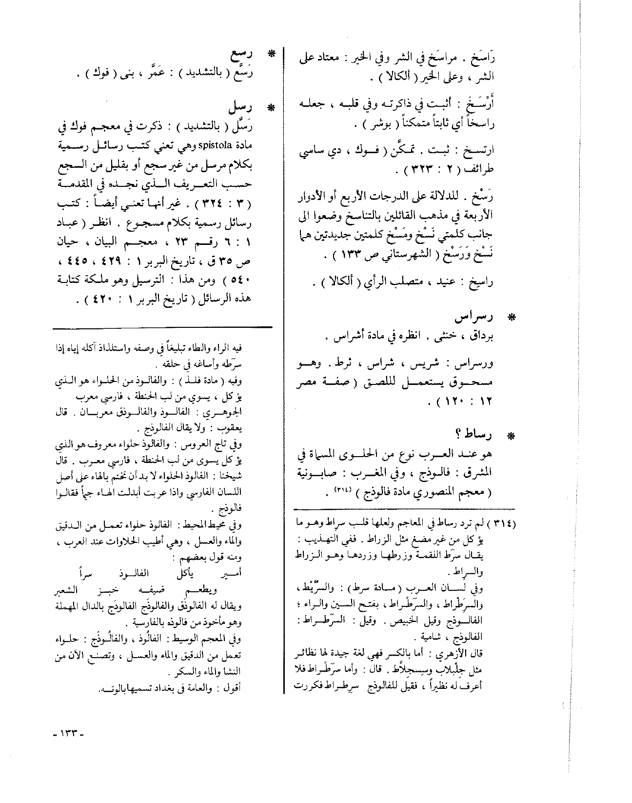 • رساط؟: هو عند العرب نوع من الحلوى المسماة في المشرق: فالوذج، وفي المغرب: صابونية (معجم المنصوري في مادة فالوذج).