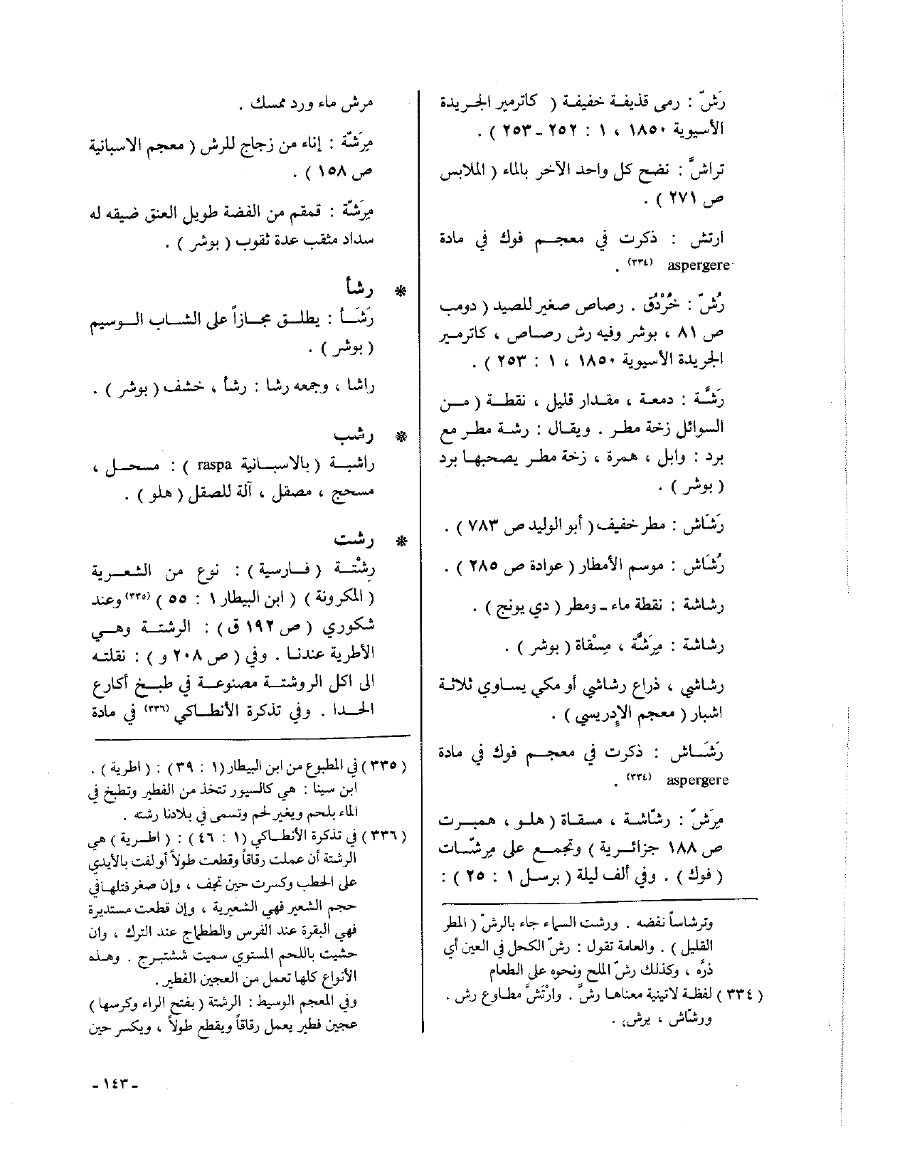 رَشَاش: ذكرت في معجم فوك مادة aspergere.